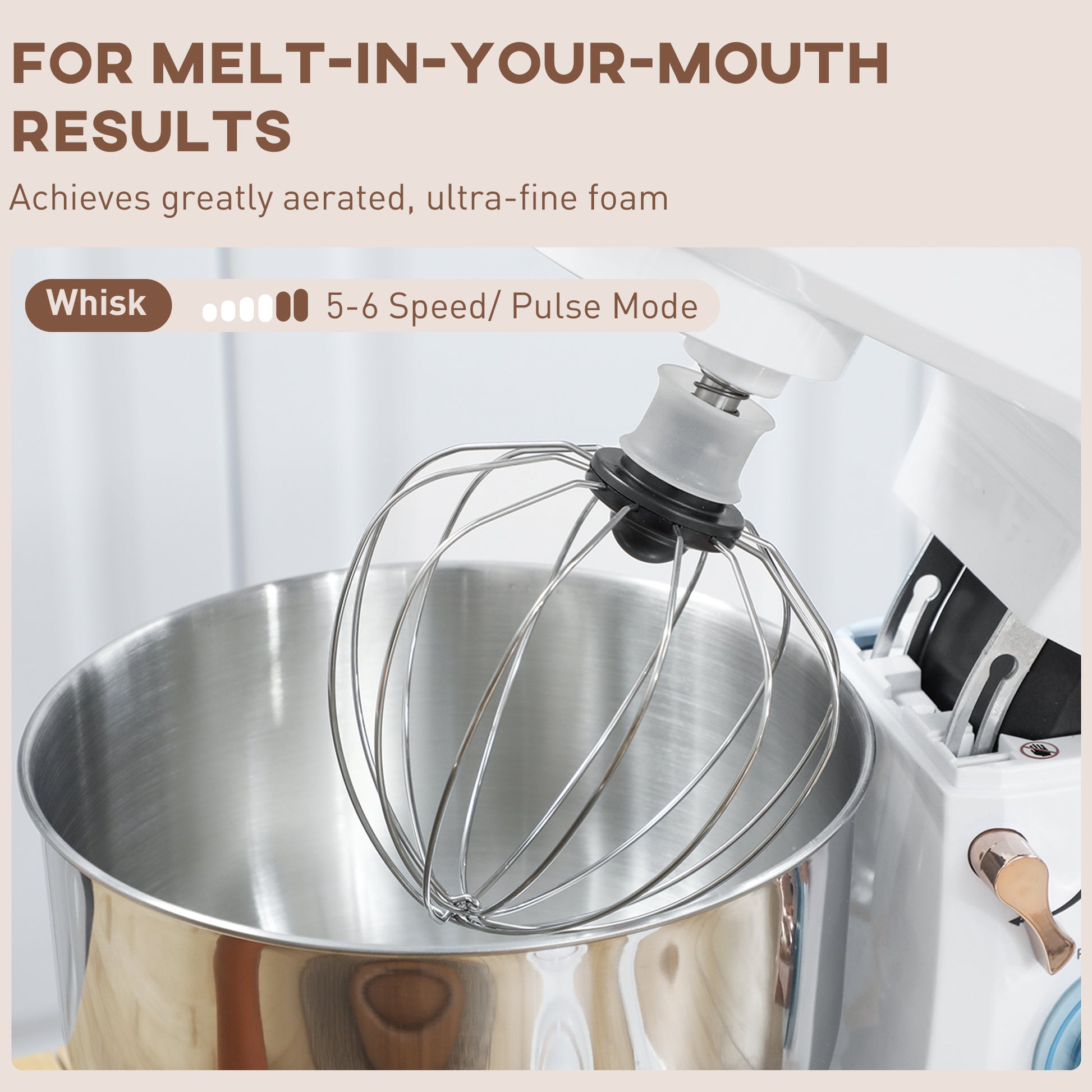 HOMCOM Stand Mixer, 5L Food Mixer for Baking, 6 Speeds and Pulse Setting, 1400W Cake Electric Kitchen Mixer with Dough Hook, Whisk, Stainless Steel Bowl, Splash Guard, Beater, White