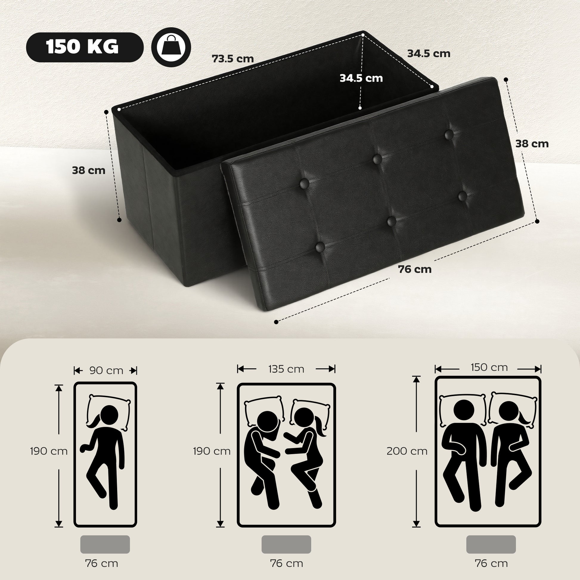 HOMCOM Storage Ottoman Bench, 89L PU Leather Folding Foot Rest Stool, End of Bed Bench, Easy Assembly, for Living Room, Bedroom, Entryway, Black