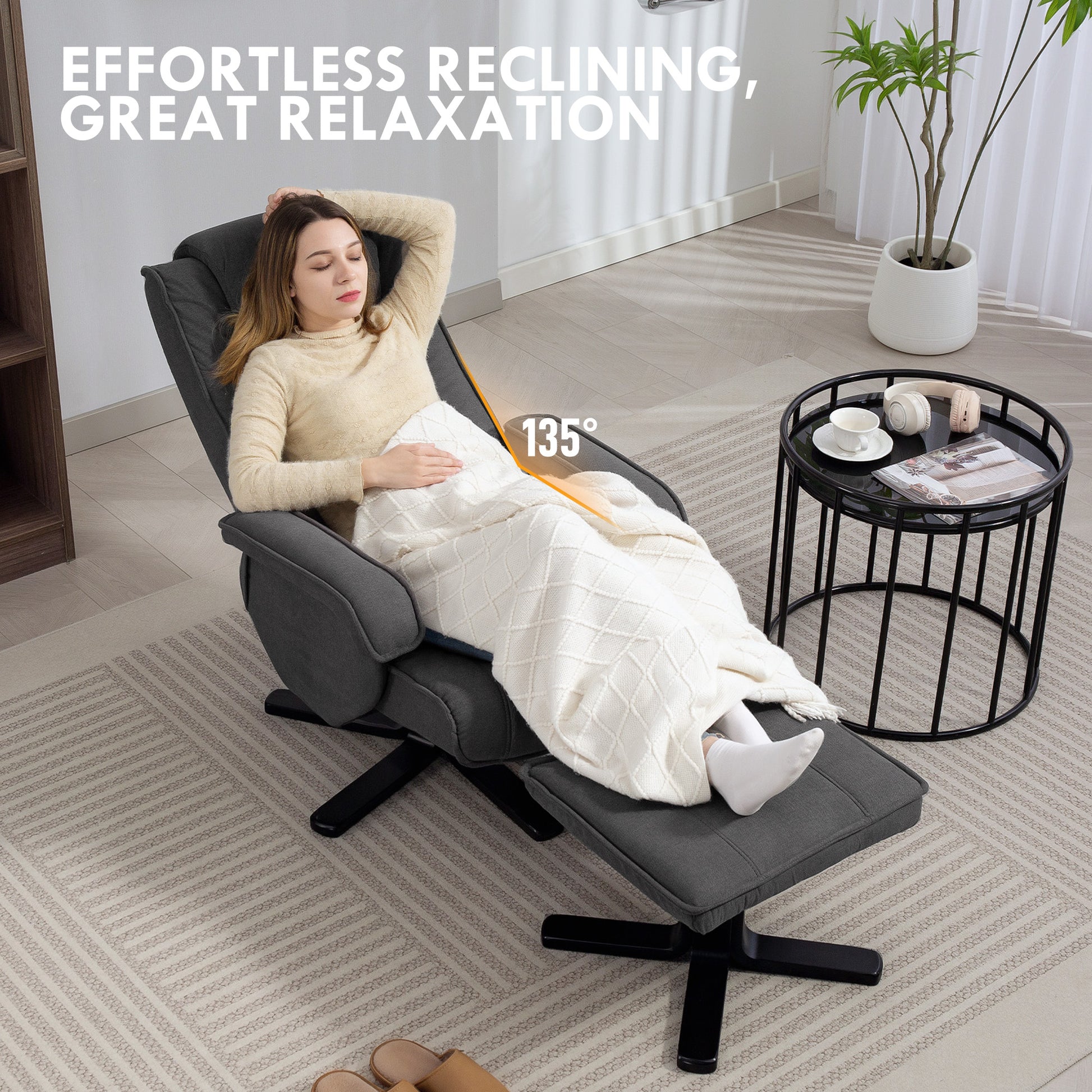 Discover relaxation anew with the HOMCOM Recliner Chair and Footstool. Enjoy limitless comfort as it reclines up to 135°, suitable as your new fireside chair or comfy living room armchair. The 13 cm thick seat padding supports every inch from back to arms, while the 360° swivel feature adds a fun twist to your lounging experience.
