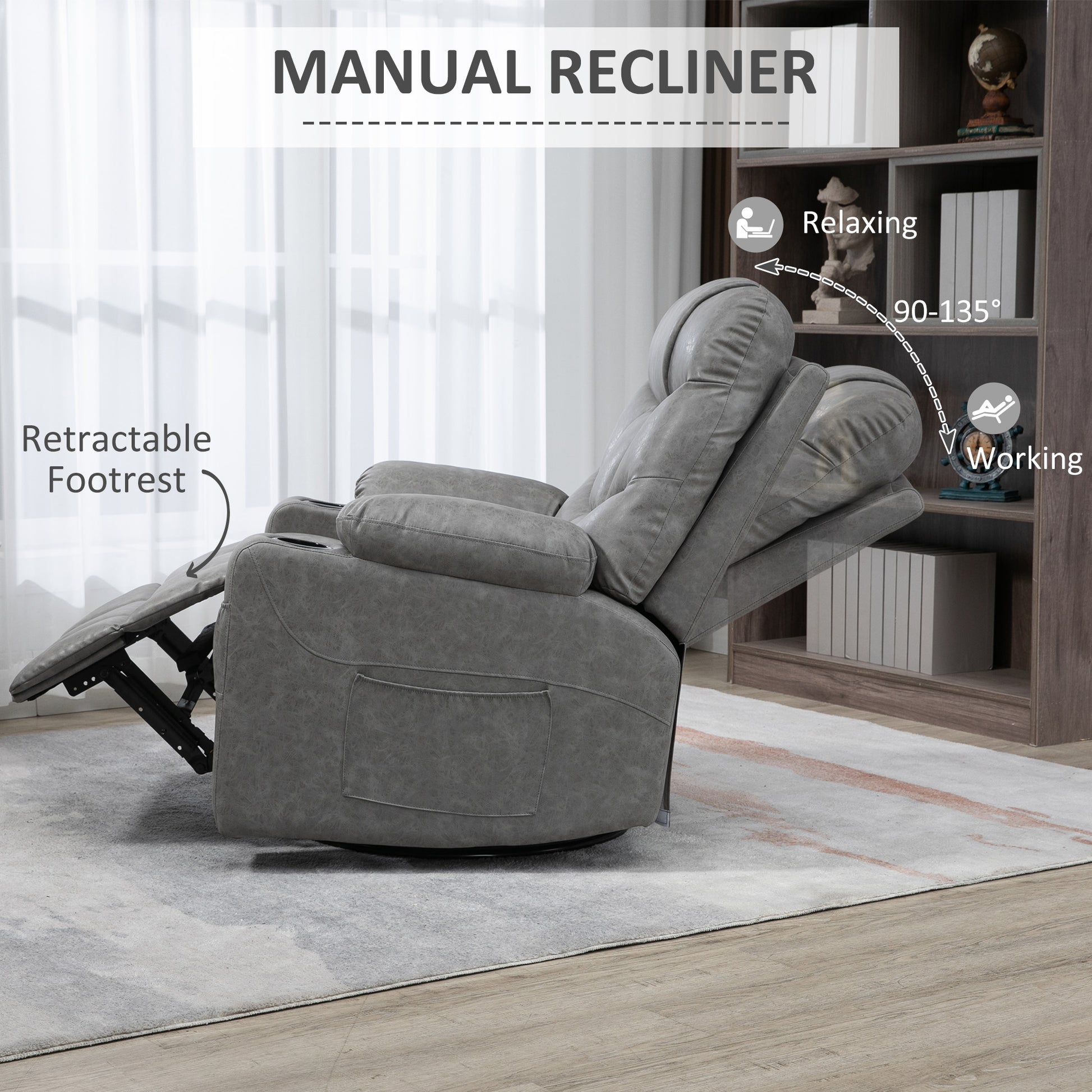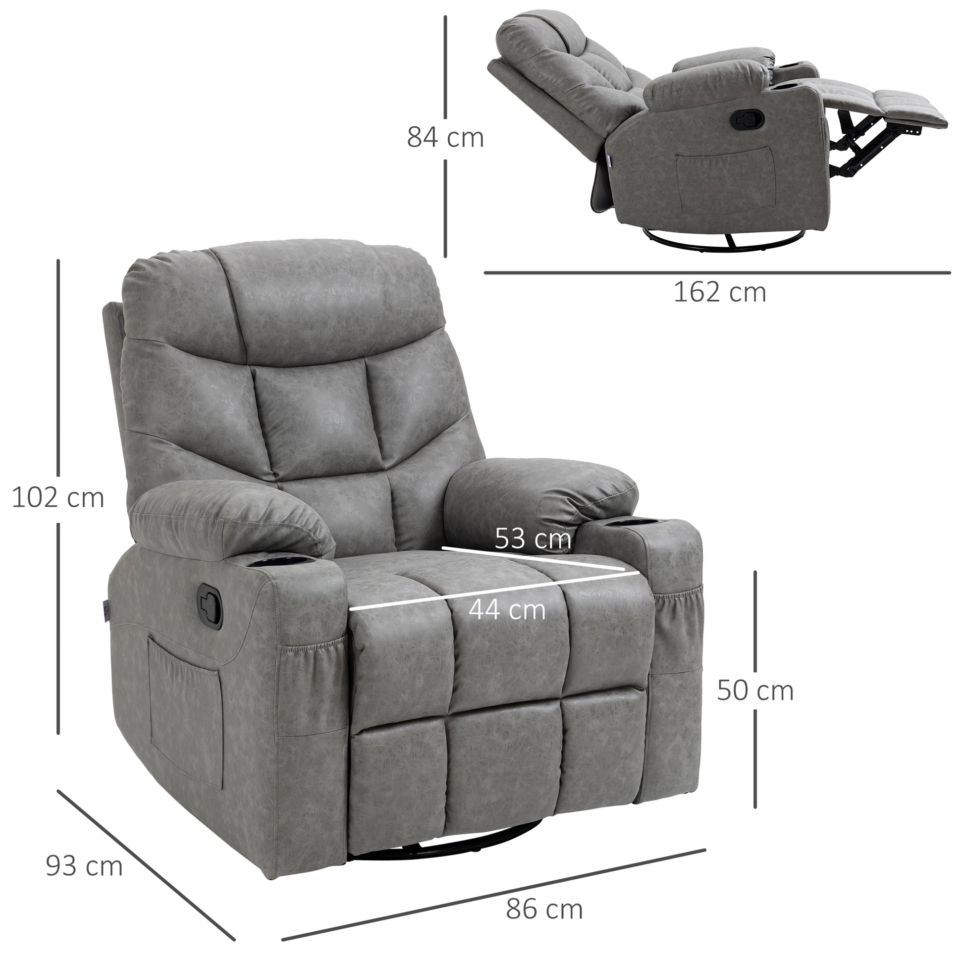 HOMCOM Thick Padded Faux Leather Recliner Armchair - Light Grey