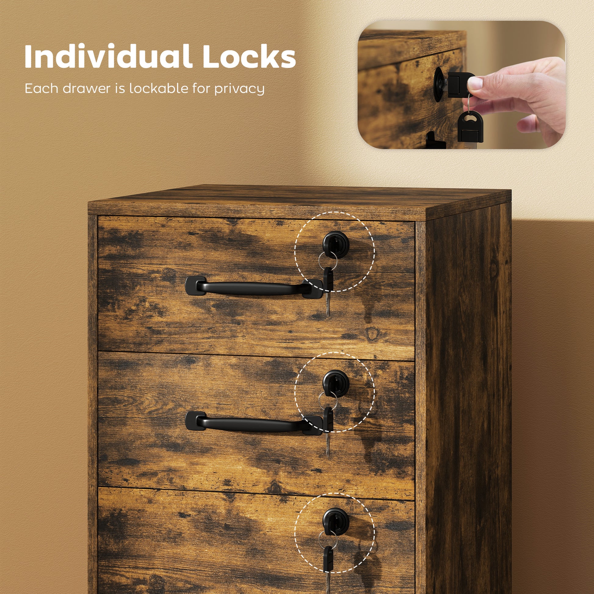 HOMCOM Three Drawer Wood-Effect Filing Cabinet - Rustic Brown