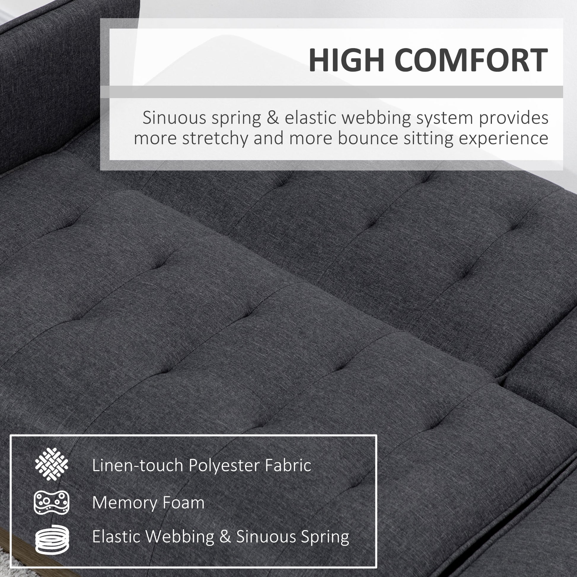 - Linen-look upholstery is smooth and stylish