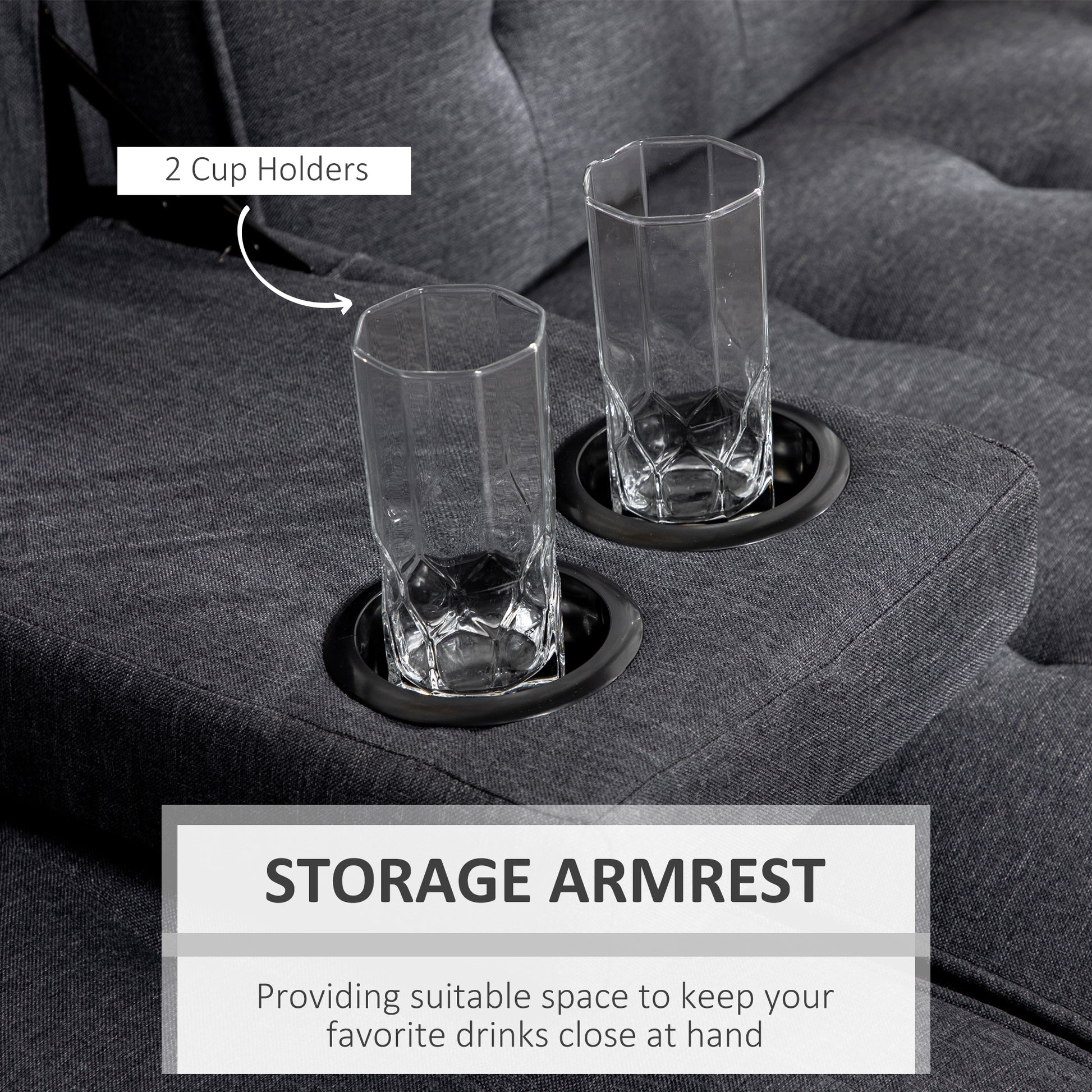 HOMCOM Three-Seater Sofa Bed, with Cupholders - Grey