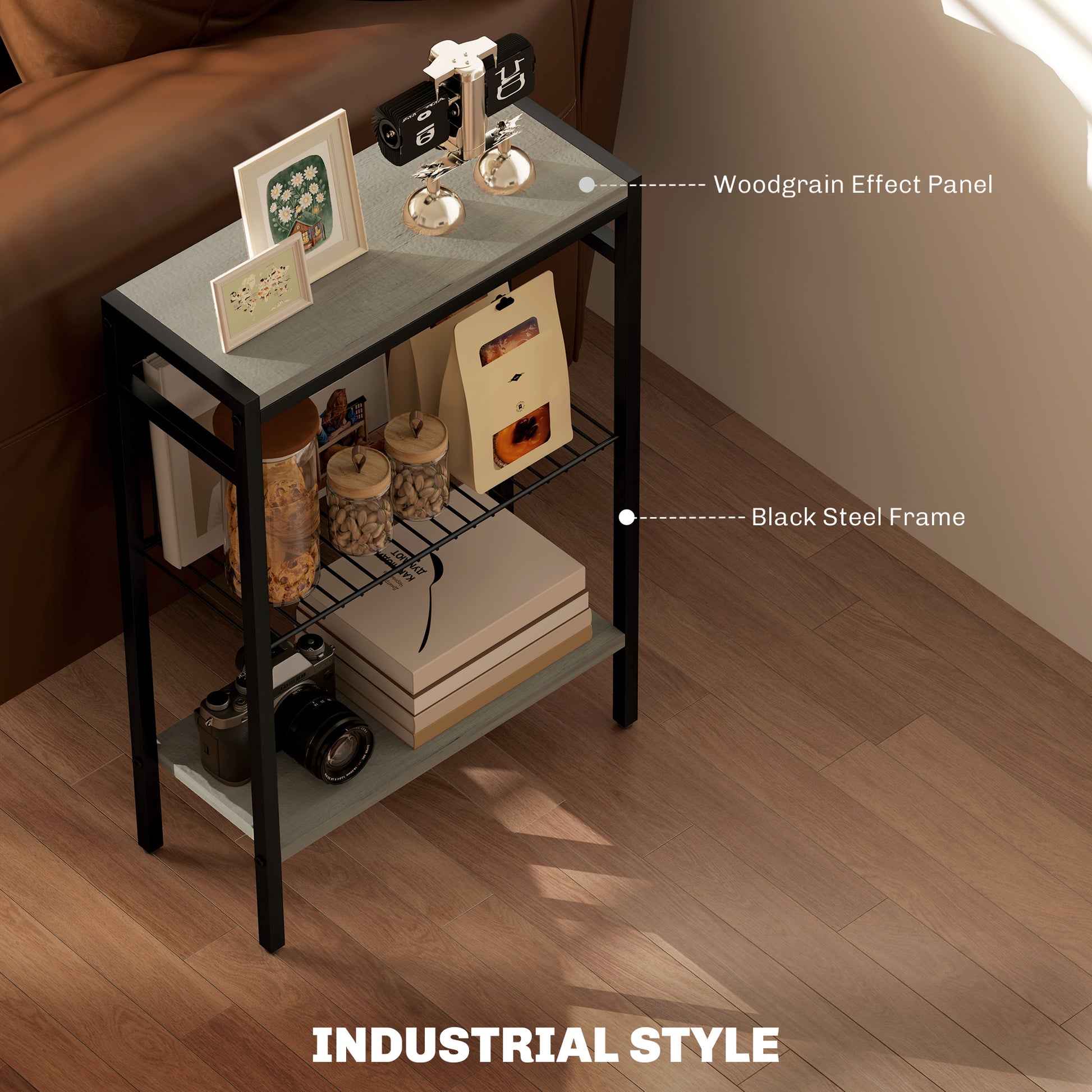 HOMCOM Three Shelf Industrial Side Table, Grey