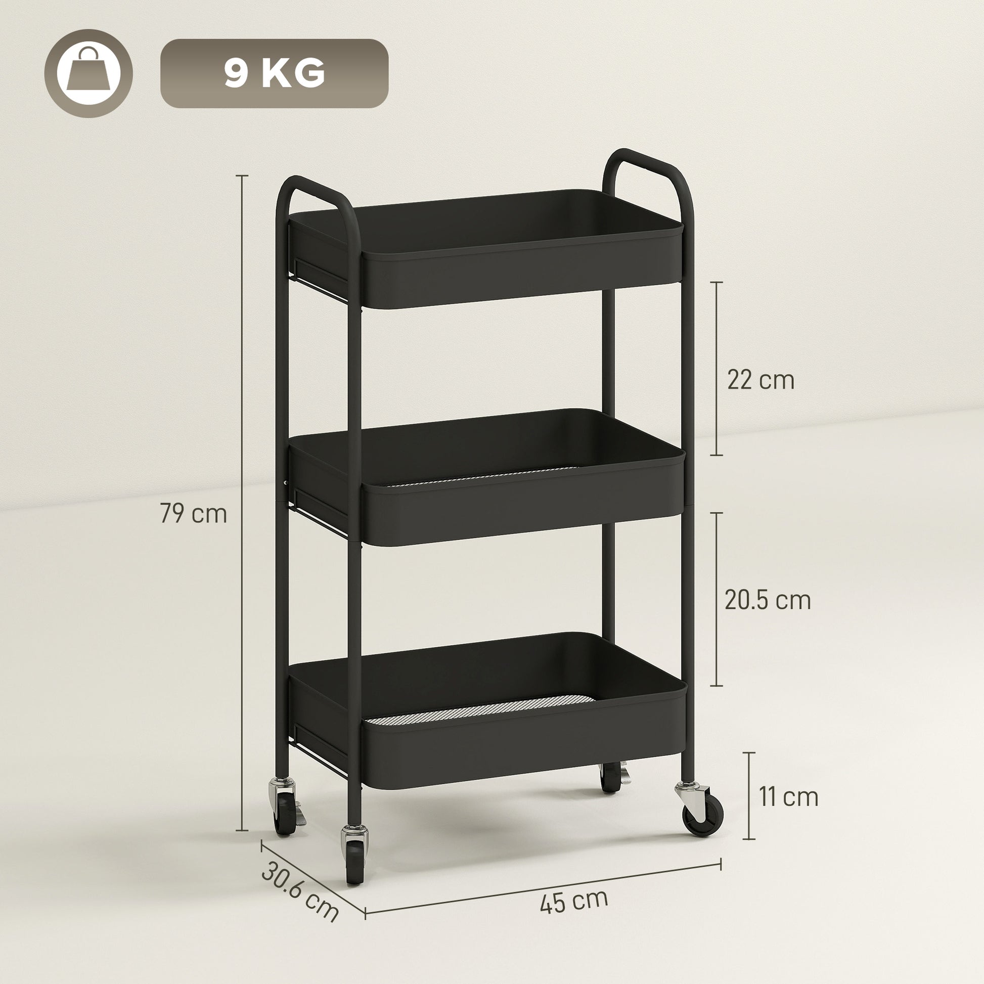 HOMCOM Three-Tier Steel Storage Trolley - Black