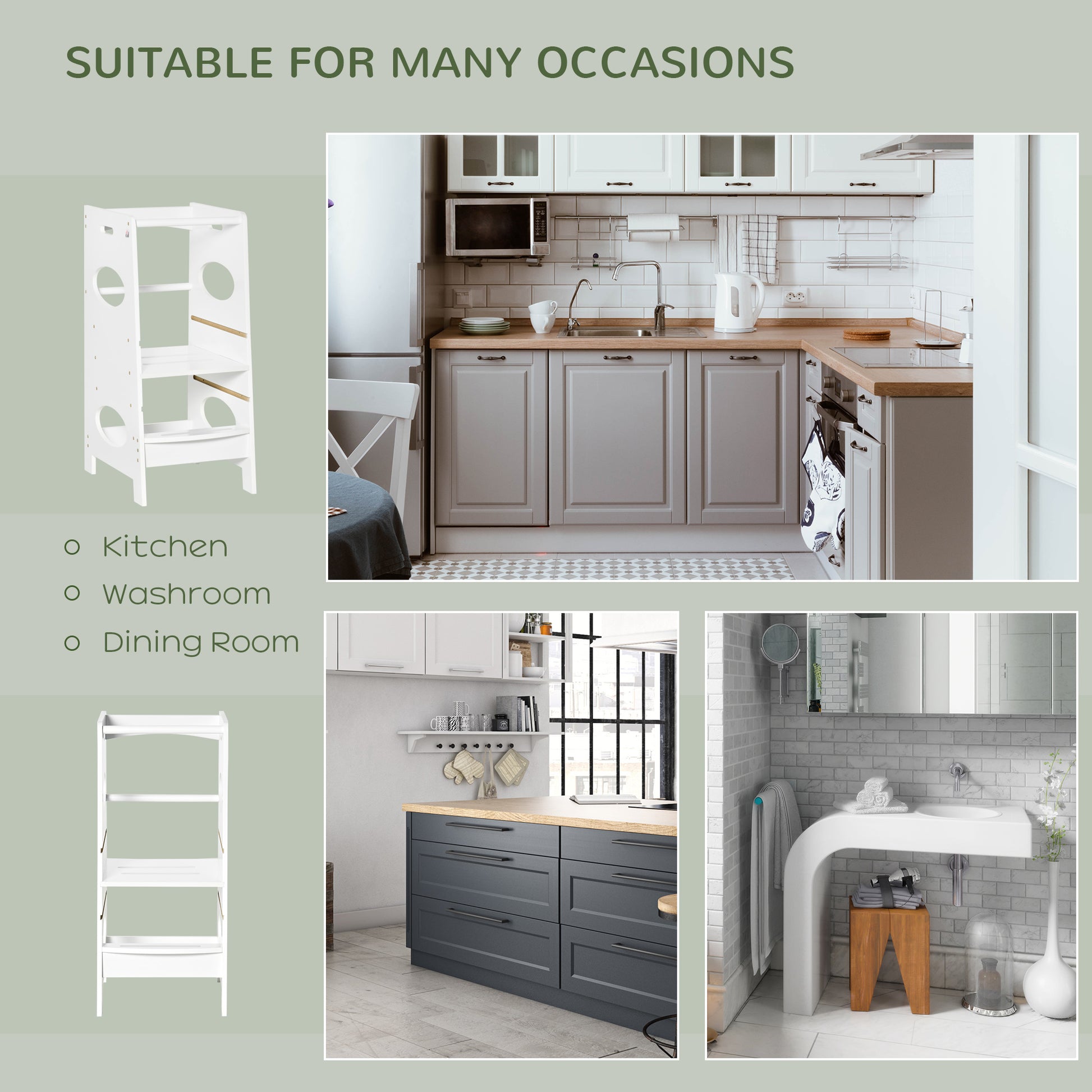 HOMCOM Toddler Step Stool Kids Adjustable Standing Tower with Safety Rail for Kitchen Counter White