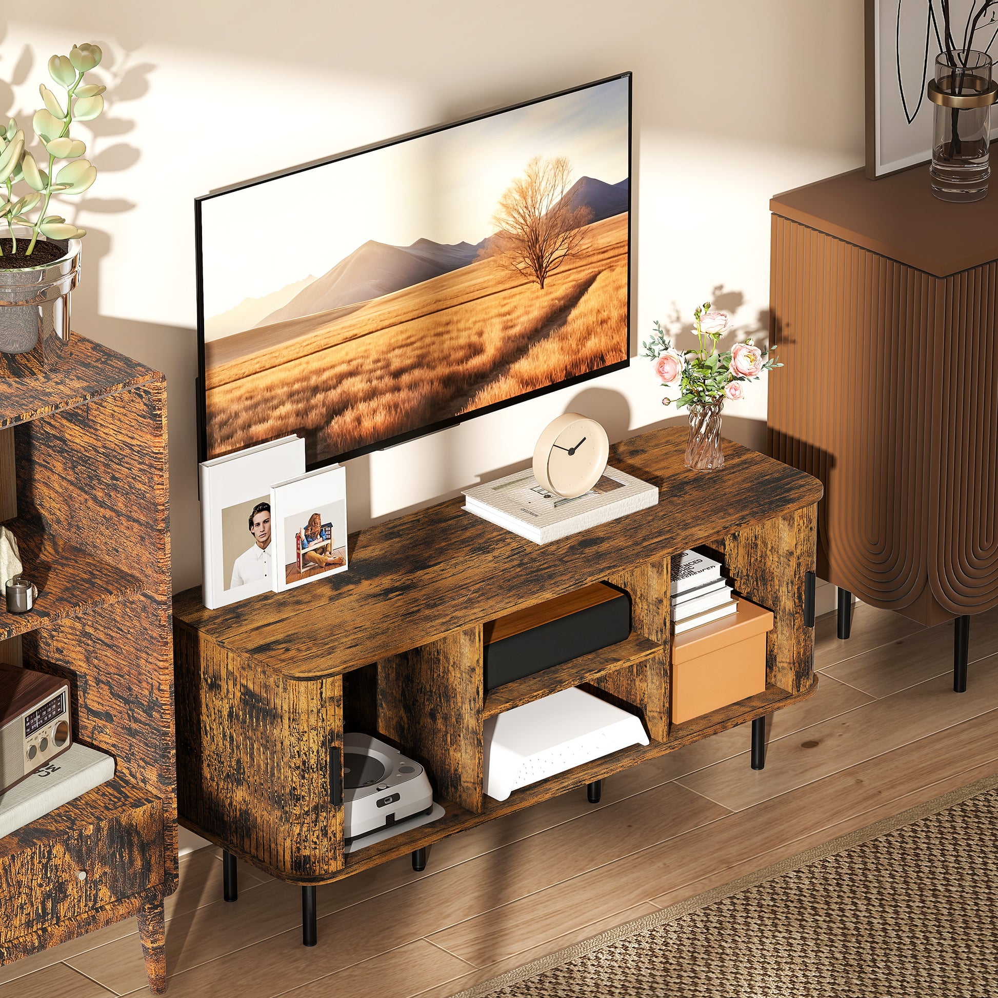 HOMCOM TV Stand Cabinet for TVs up to 55 Inches, TV Unit with Storage Shelves and Cupboard for Living Room, Rustic Brown
