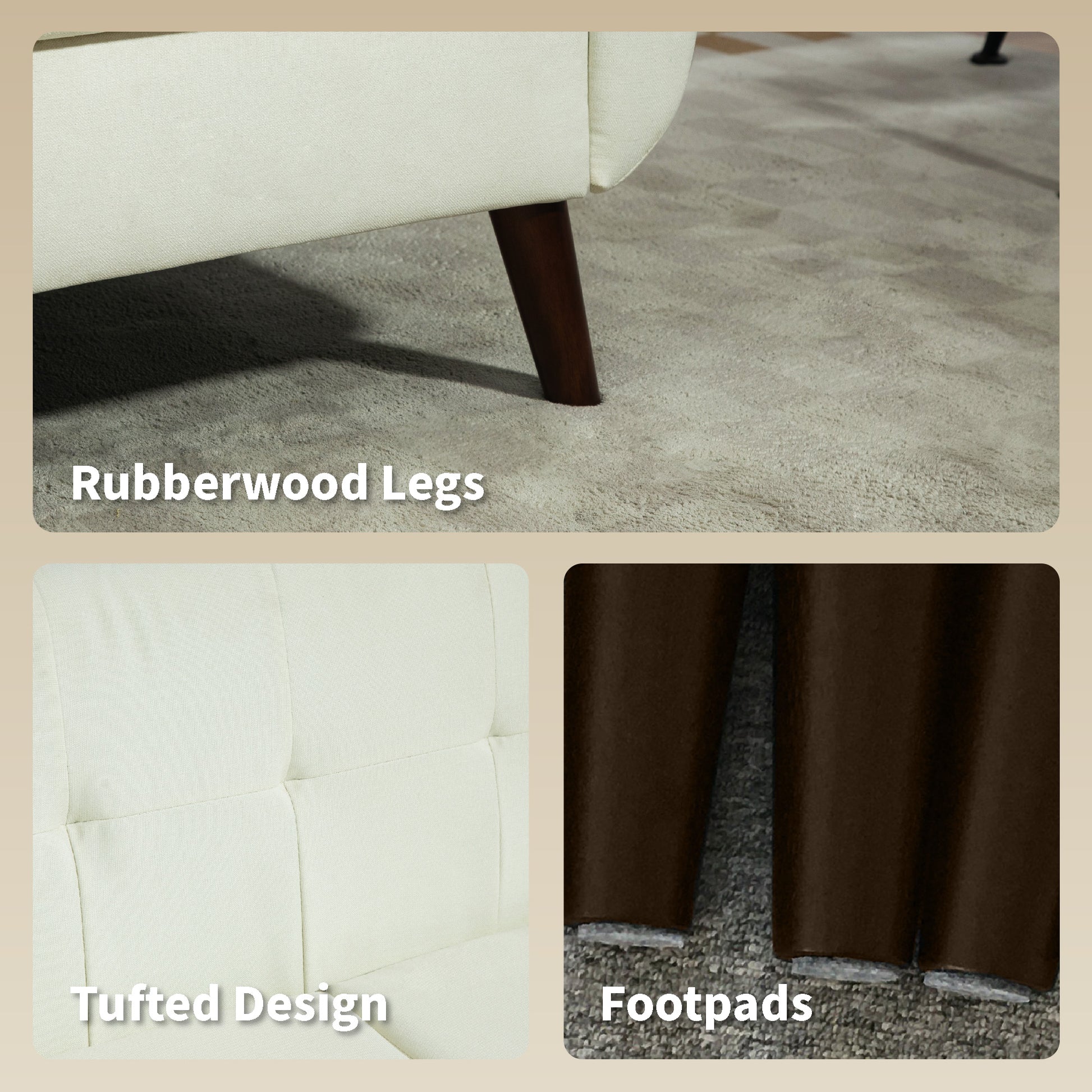 - Solid wood frame and rubberwood legs ensure durability