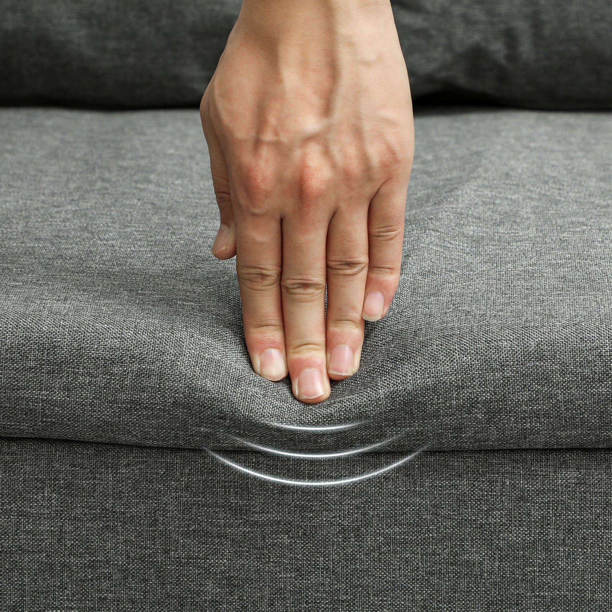 Switch from sitting to sleeping with ease, thanks to this two seater sofa bed from HOMCOM. Using steel and solid wood for the frame, the couch bed is solid and tough. Filled with thick sponge padding and wrapped in cotton cloth fabric for great comfort. This sofa bed comes with two pillows for extra comfort and support. Now, your guests will always have somewhere cosy to sleep when they come over for the night.
