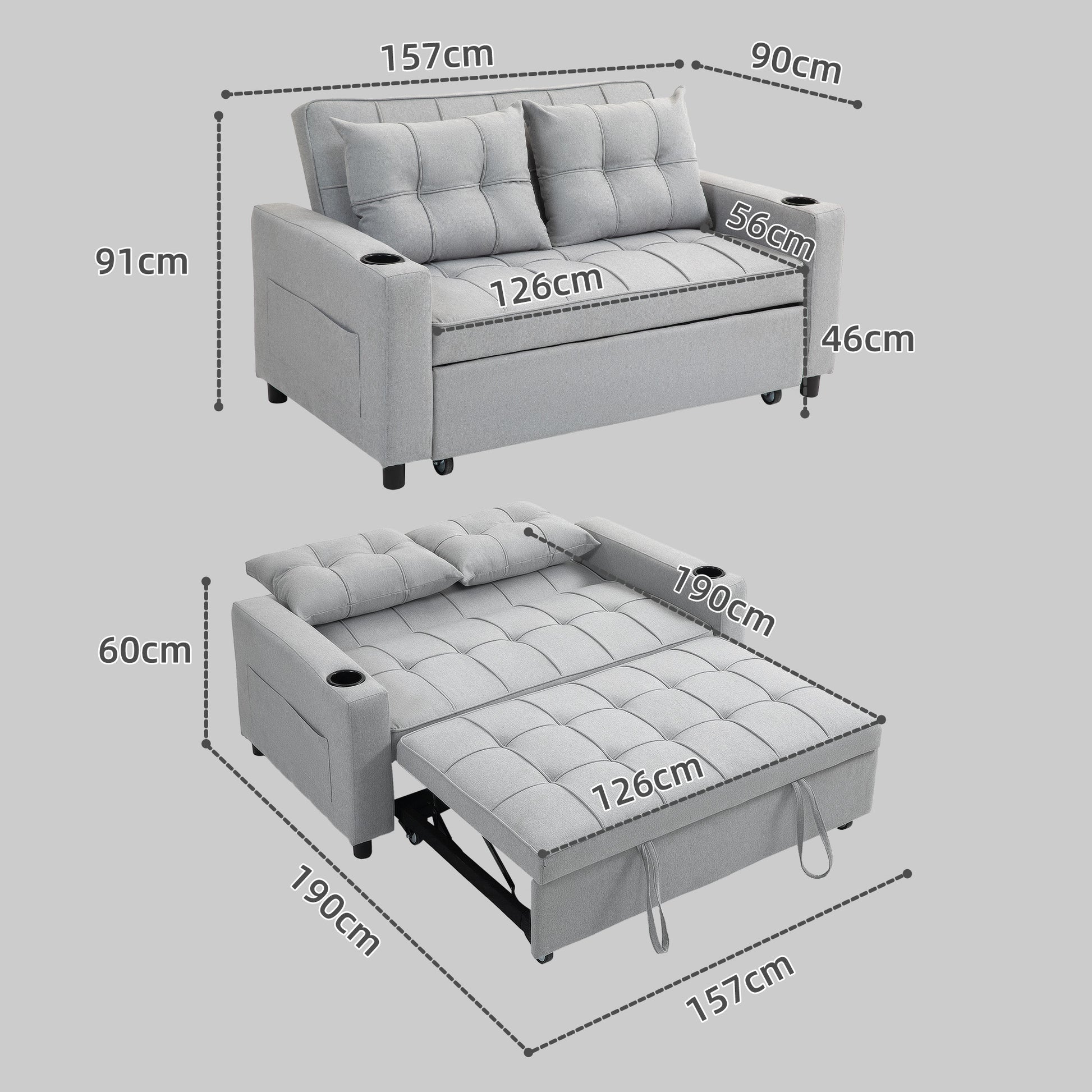 - Loveseat converts easily to a double bed: great for small spaces and overnight guests