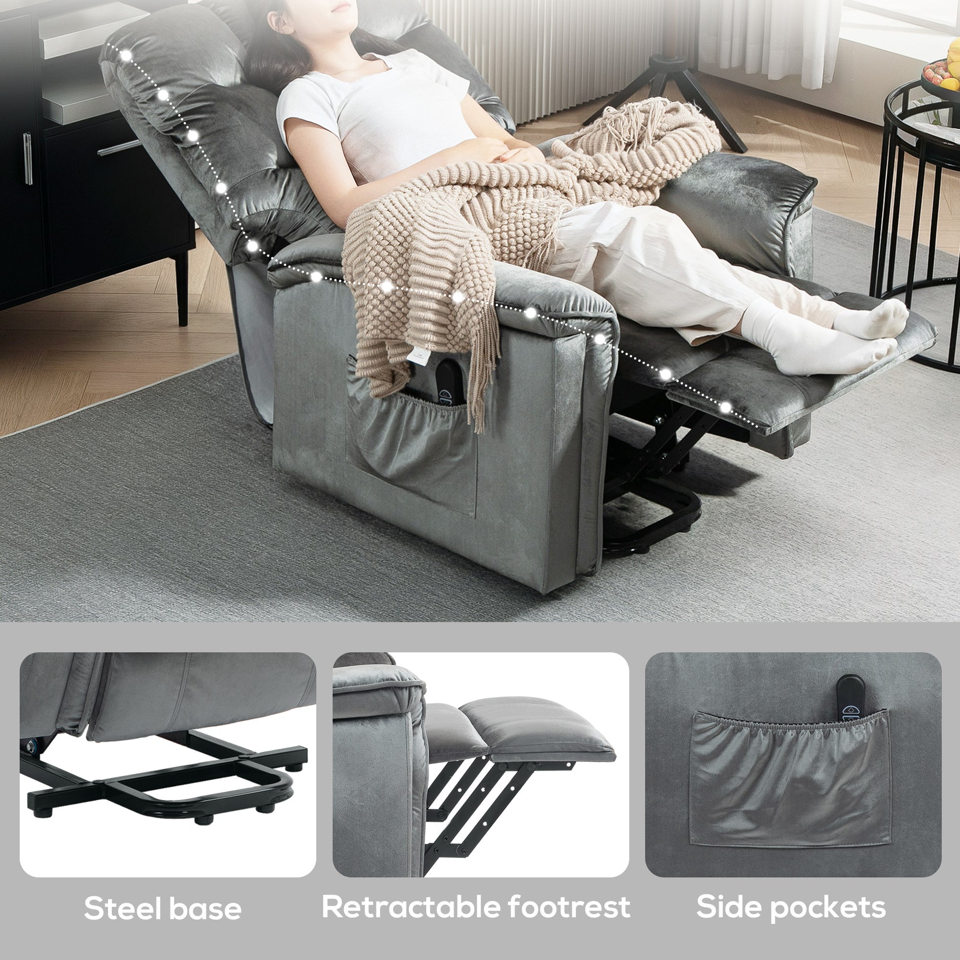 HOMCOM Velvet-Feel Electric Lift Recliner Chair - Dark Grey