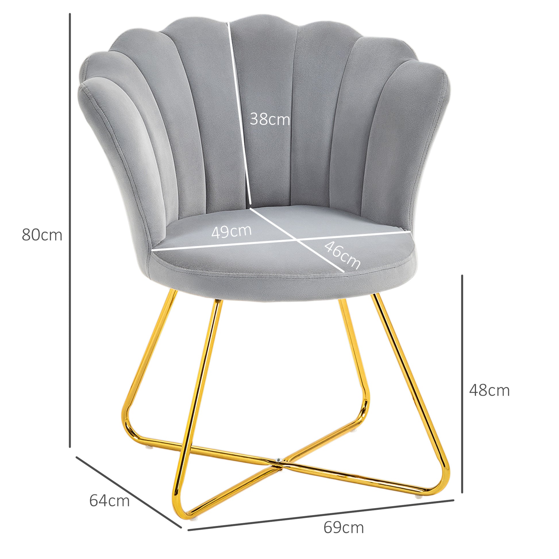 HOMCOM Velvet-Feel Lotus Petal Accent Chair - Grey