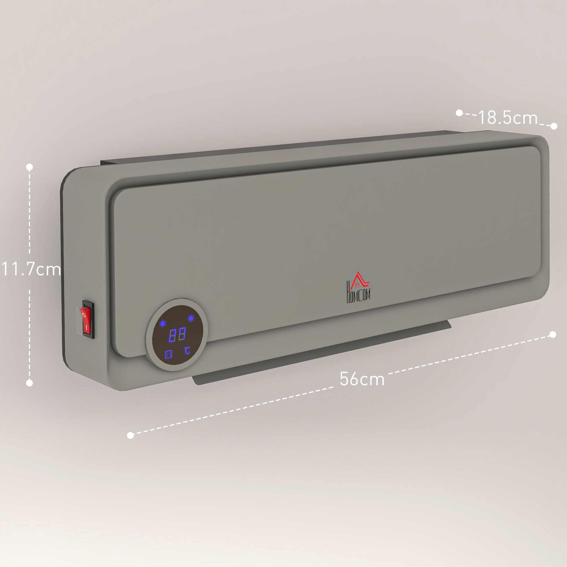 HOMCOM Wall Downflow Heater 2 Heat and Fan 1000W/2000W, Electric Space Heater with Timer Remote Oscillating, for Bedroom Home Office, Grey