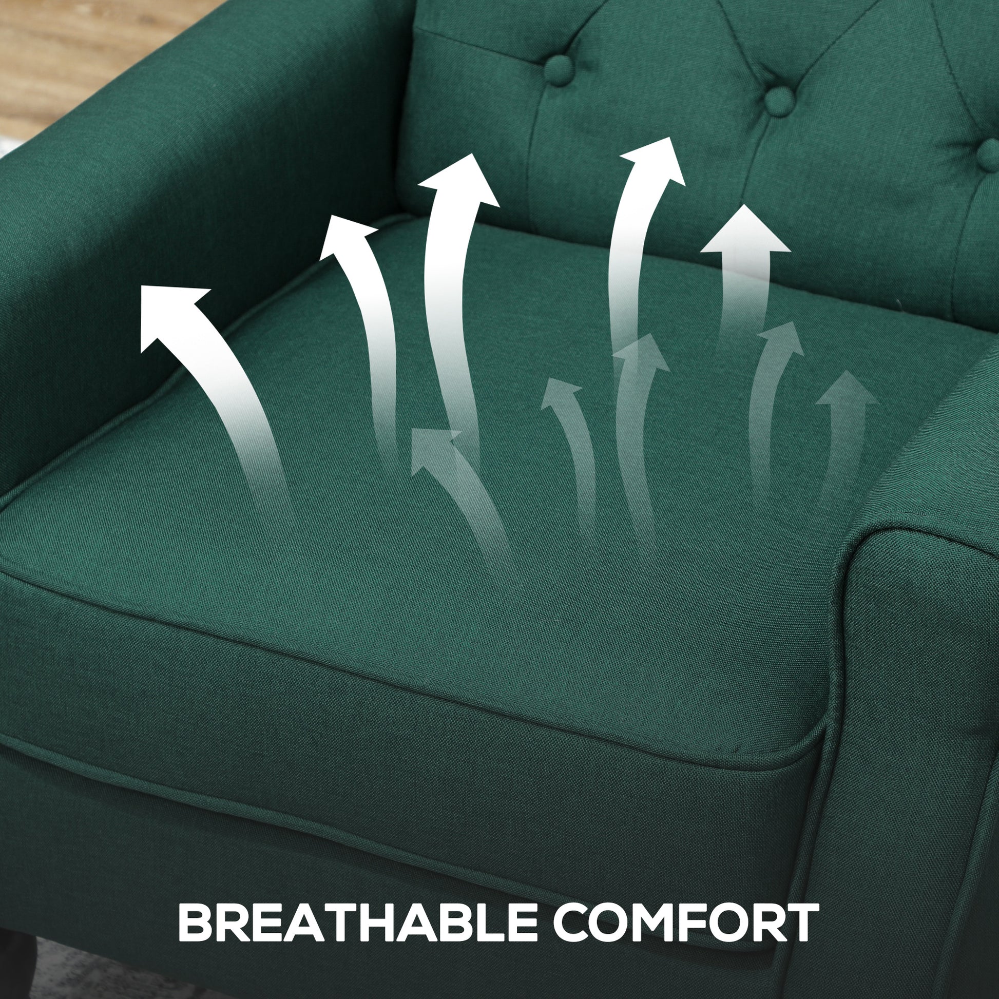 HOMCOM Wingback Accent Chair, Retro Upholstered Button Tufted Occasional Chair for Living Room and Bedroom, Dark Green