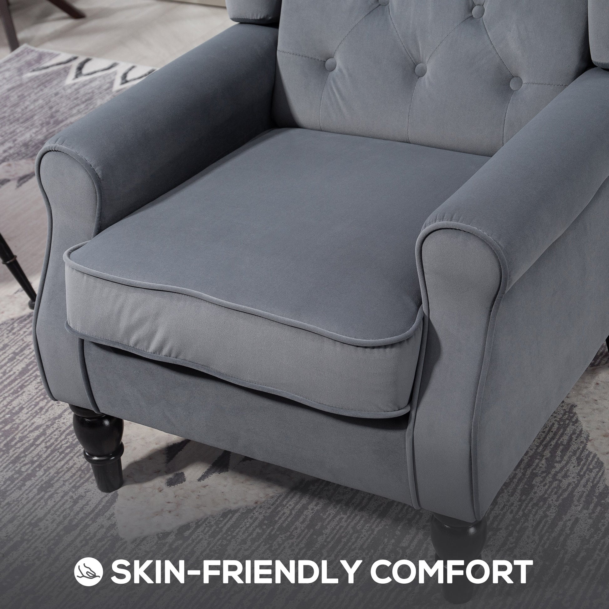 HOMCOM Wingback Accent Chair, Retro Upholstered Button Tufted Occasional Chair for Living Room and Bedroom, Grey