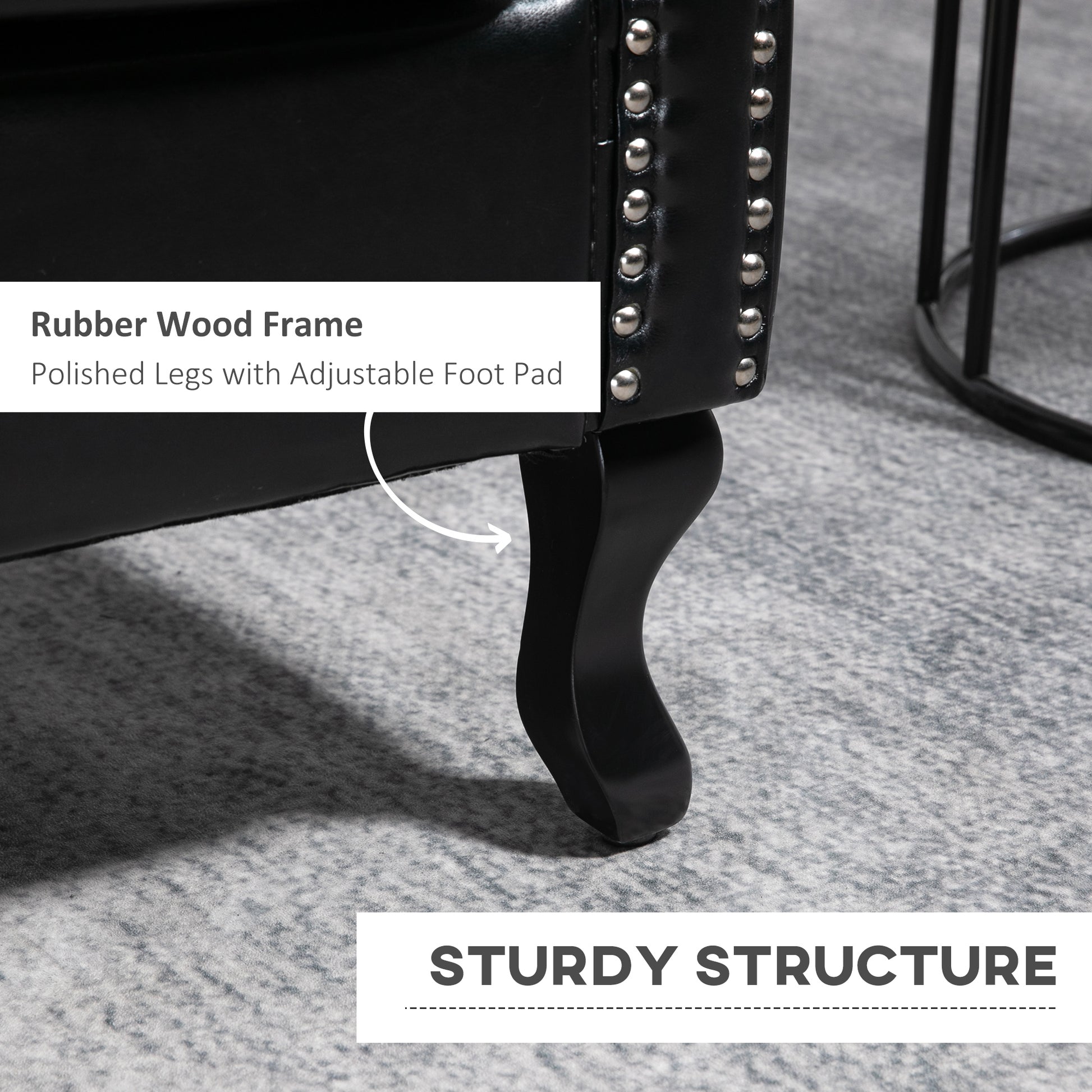 HOMCOM Wingback Accent Chair Tufted Chesterfield-style Armchair with Nail Head Trim for Living Room Bedroom Black