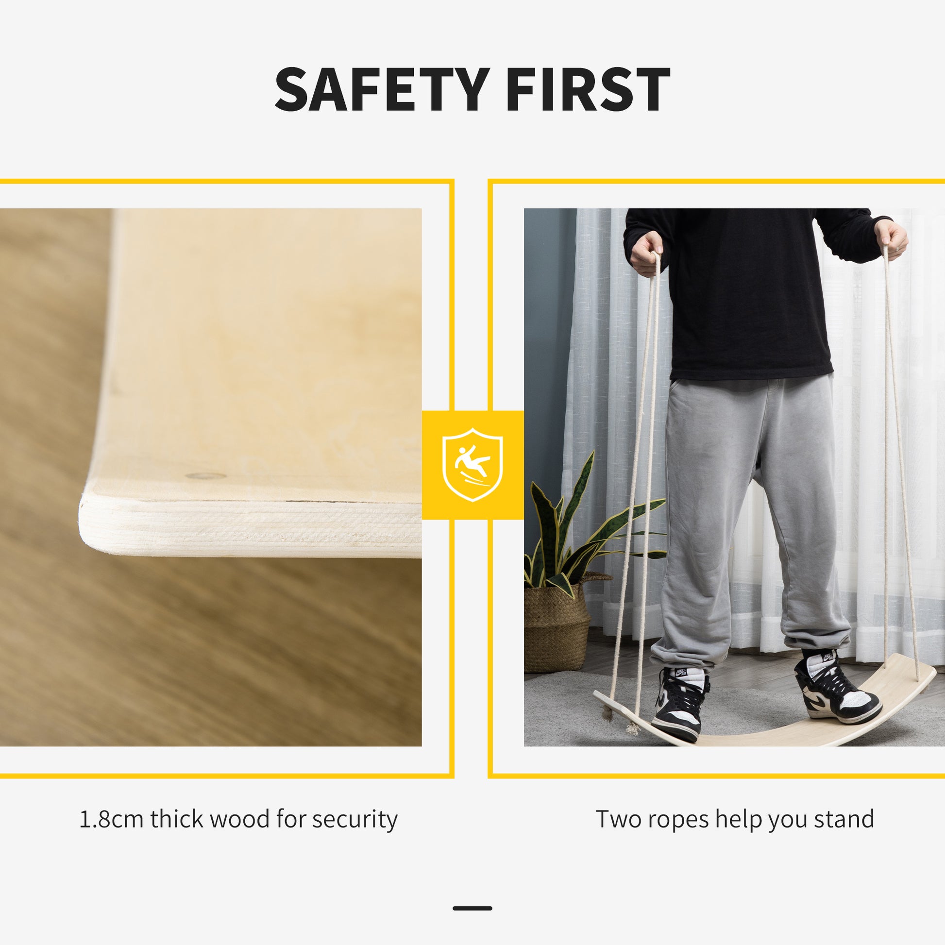 HOMCOM Wood Wobble Board with Ropes, Balance Board for Full Body Workout, Multipurpose for Kids and Adults