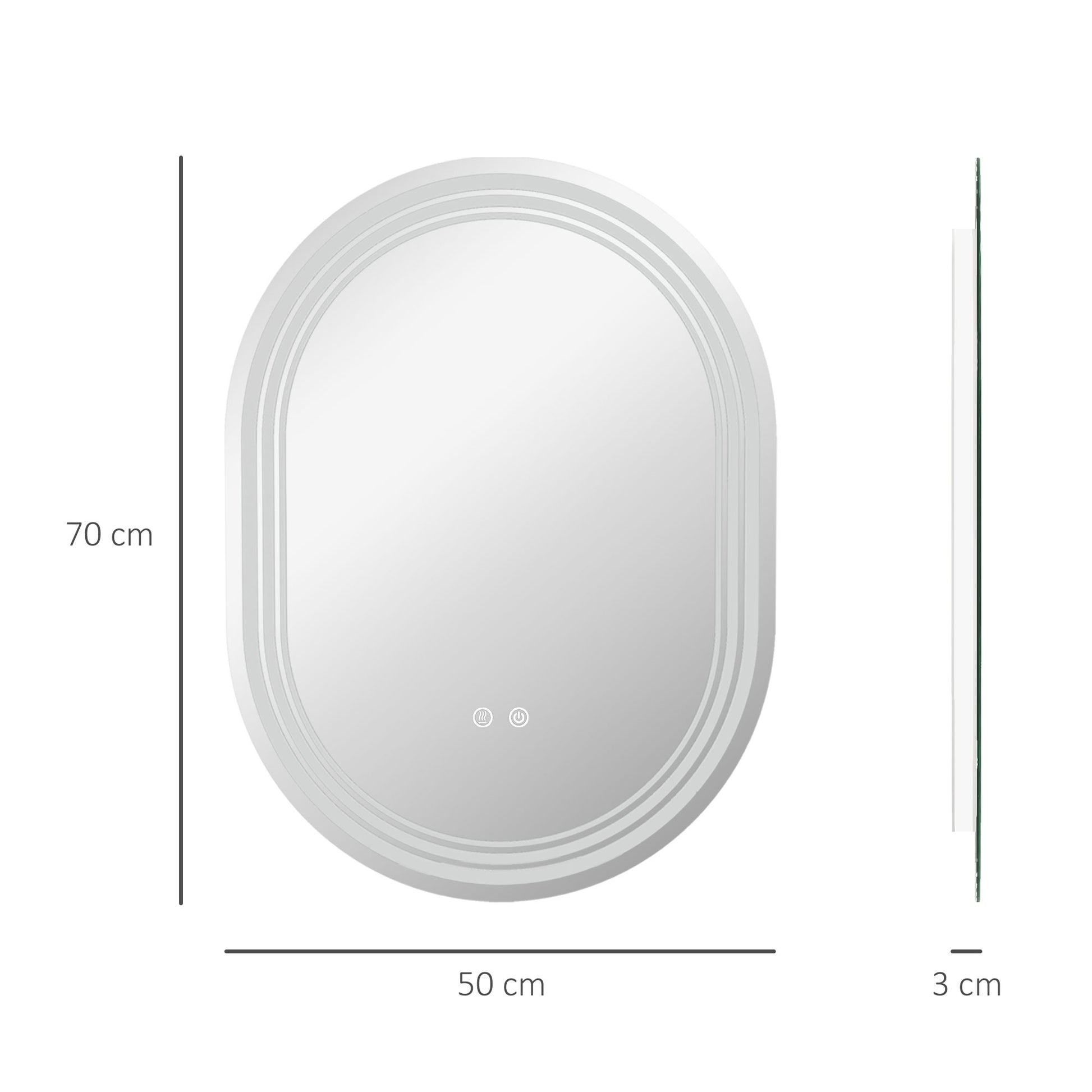Not only a bathroom essential, but this kleankin LED mirror is a trendy piece for your everyday place of hygiene. A smoothly curved modern oval design, this is a modern design. The edge is fitted with an adjustable LED light - use the touch sensor to adjust the brightness and colour between warm white, white and cold white. The anti-fog function means the mirror doesn't become steamy, so you can see your reflection in this makeup mirror, even straight out from the shower.