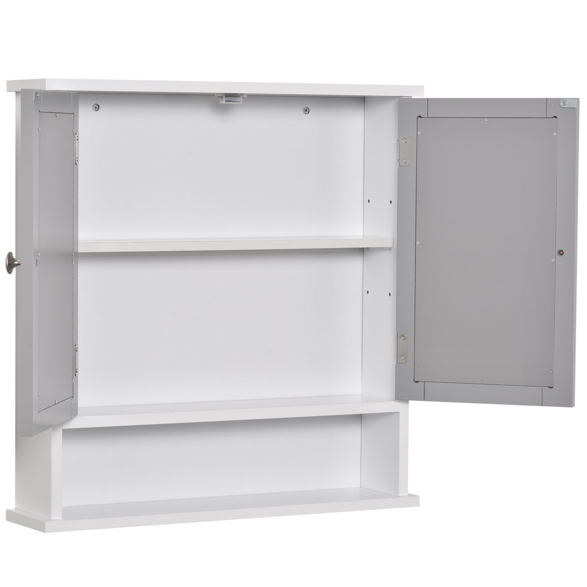 An everyday spot to get ready starts with this kleankin bathroom cabinet. As well as space to keep products, cosmetics, toiletries and more safely stored inside, it features two small front mirrors for easily getting ready. The inner adjustable shelf creates room for larger items when needed, with the bottom open shelf for even easier easy access. It's finished with polished metal door handles.