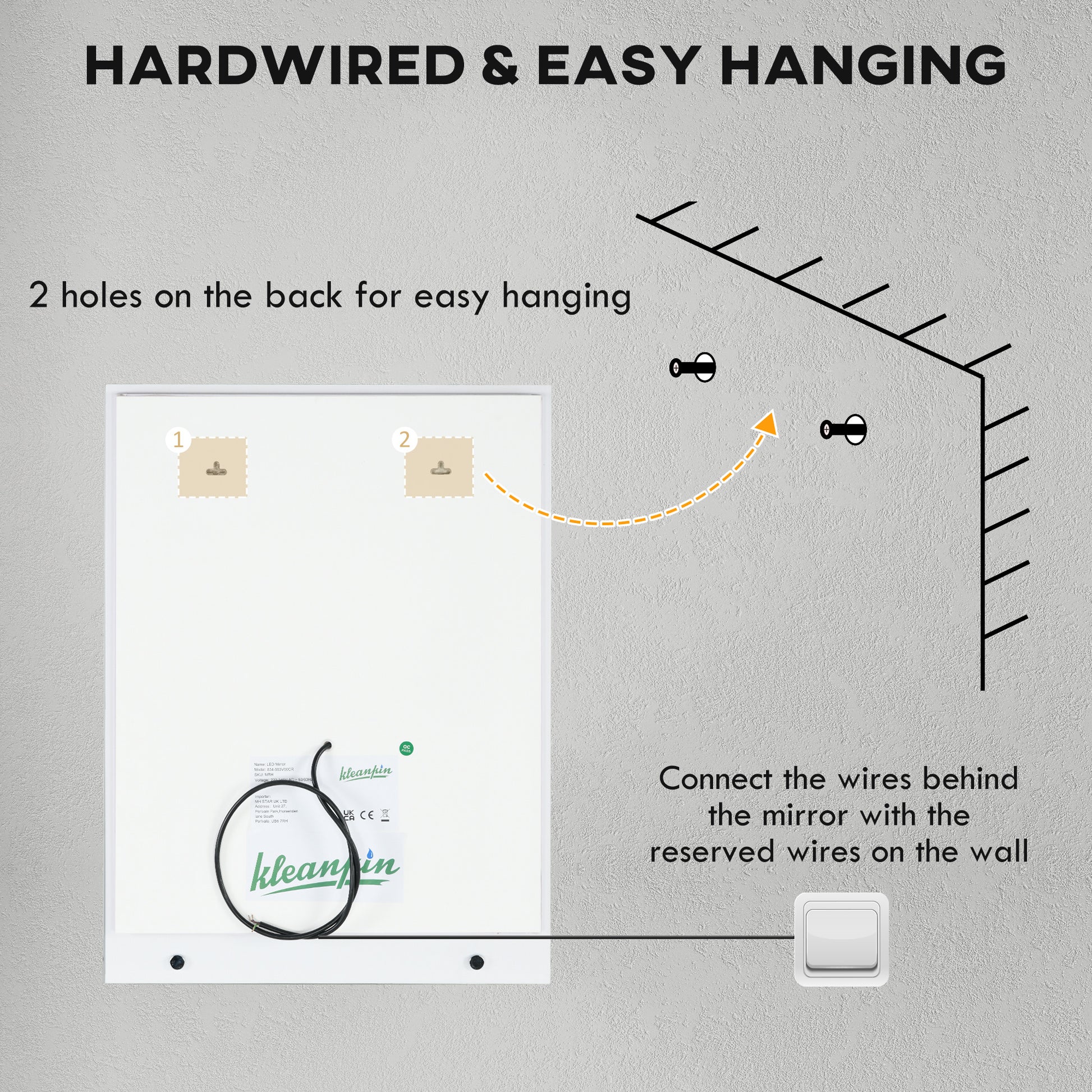 Style and functionality, rolled into one. This kleankin illuminated bathroom mirror is a spot you can see yourself and get ready, anytime. An outer LED lights up the whole of the mirror - change between warm white, white and cool white: use throughout different times of the day. The touch control allows you to adjust the settings easily. Comes with anti-fog function: glass will not mist in humid environments.