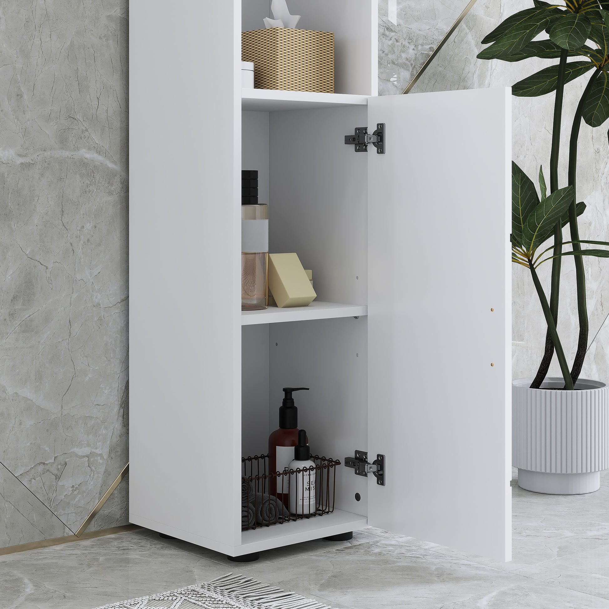 kleankin Line Embossed Tall Bathroom Storage Cabinet - White