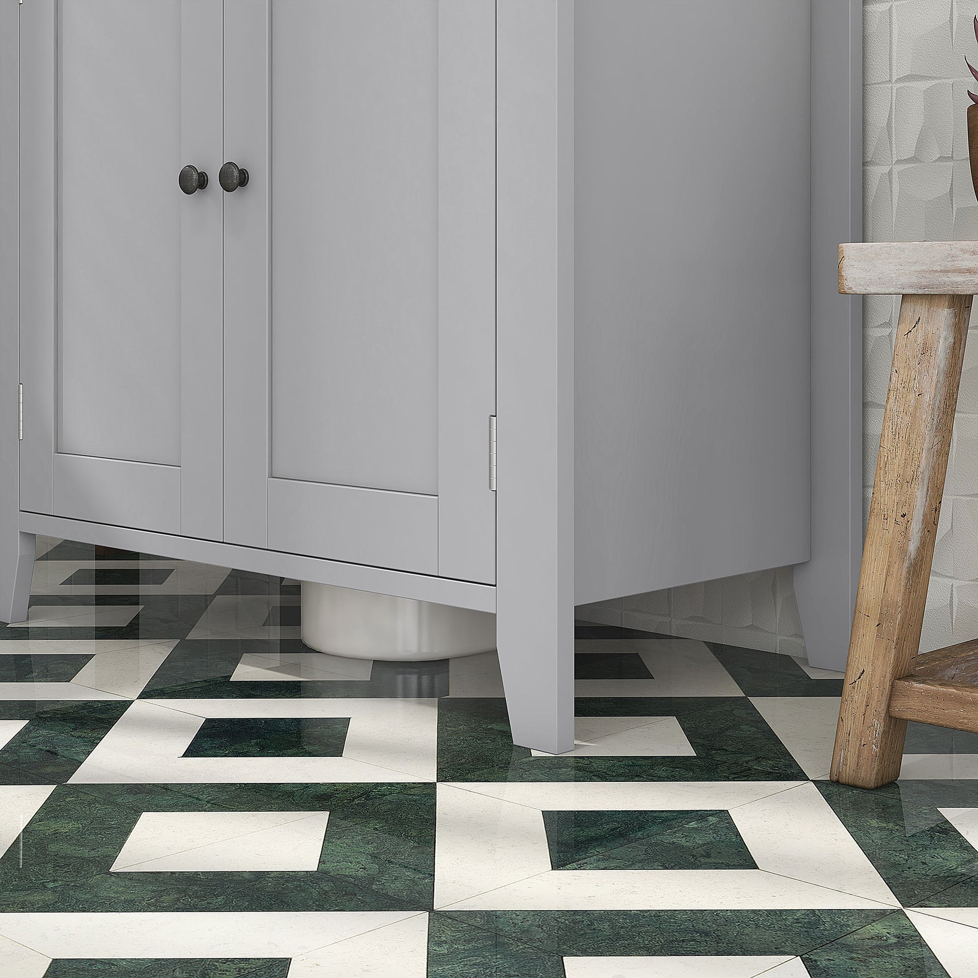 kleankin Under Sink Cabinet, Bathroom Sink Cabinet with 2 Doors, Pedestal Under Sink Design, Freestanding Bathroom Cupboard with Adjustable Shelf, Grey