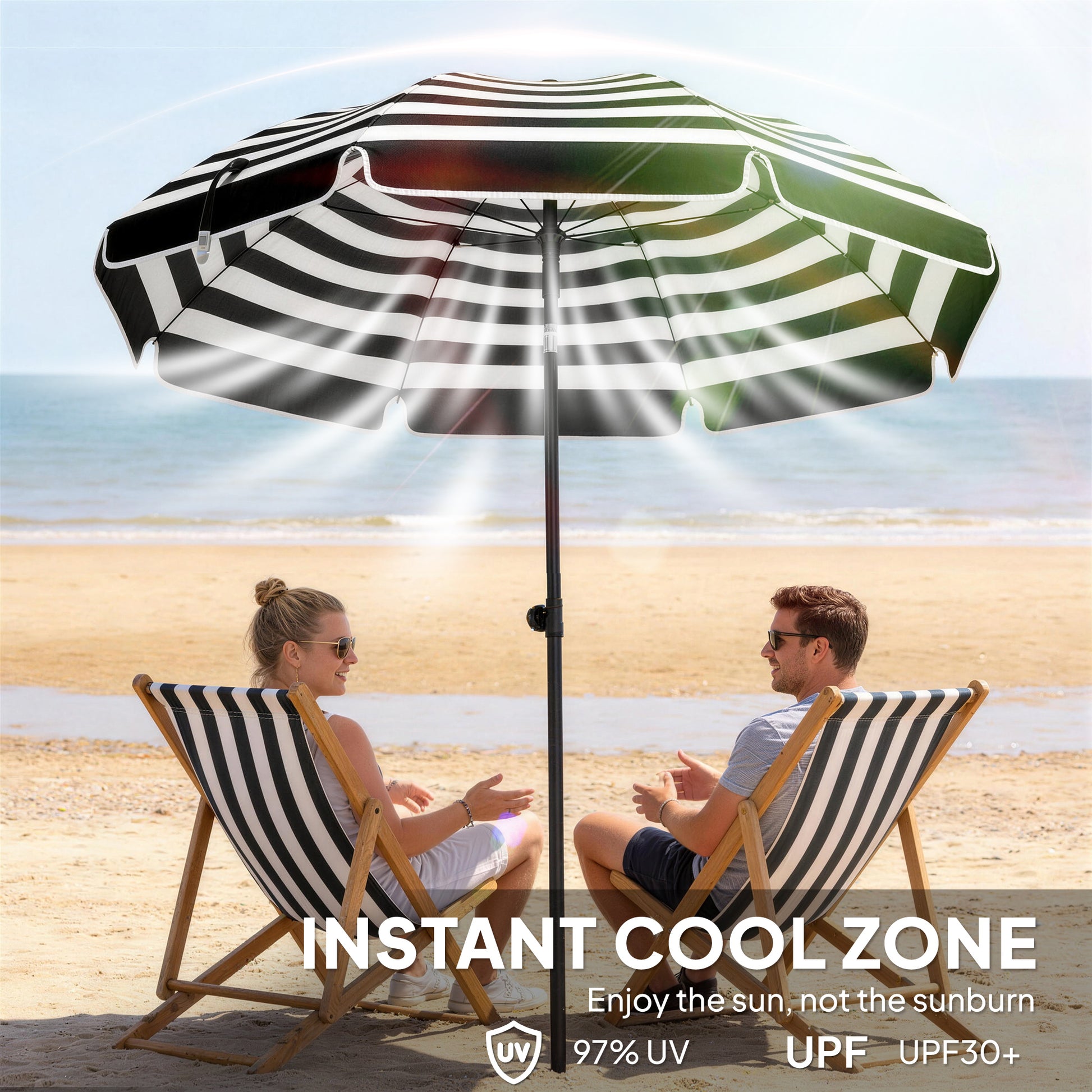 Enjoy relaxed seaside moments with the Outsunny beach umbrella, bringing comfortable shade from morning to afternoon. The tilting canopy and adjustable pole make it easy to follow the sun while you unwind on a beach chair or beside a small table. A UPF30+ polyester canopy helps create a cooler spot under the sun, while the pointed pole pushes easily into the sand for simple setup. Lightweight and easy to carry in the included bag, it's ready for spontaneous days by the sea.