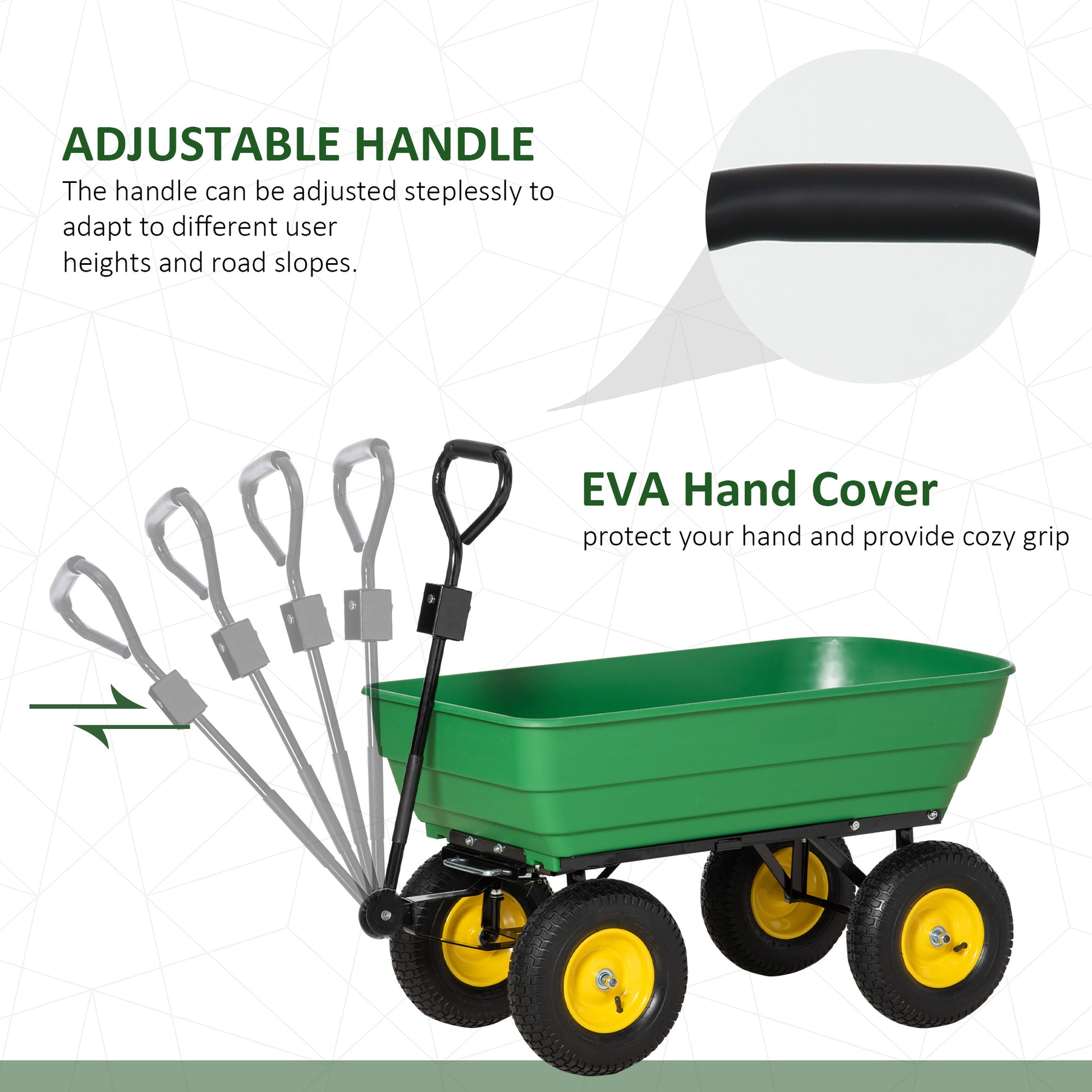 Outsunny 125 Litre Large Garden Cart Heavy Duty 4 Wheel Trolley Dump Wheelbarrow Tipping Truck Trailer - Green
