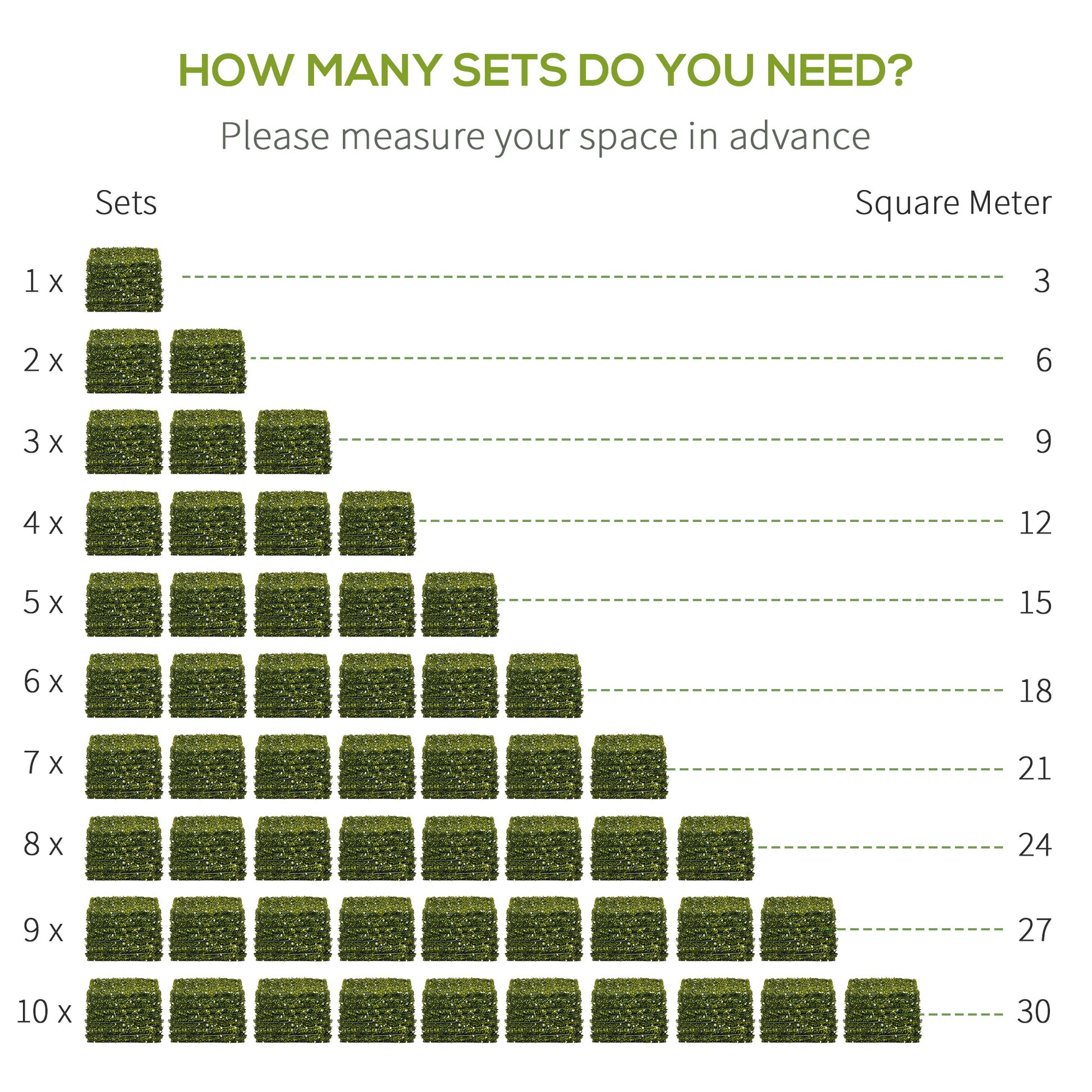 Outsunny 12PCS Artificial Boxwood Wall Panels 50cm x 50cm Grass Privacy Fence Screen Faux Hedge Greenery Backdrop Encrypted Milan Grass with White Flowers for Home Garden Backyard Balcony