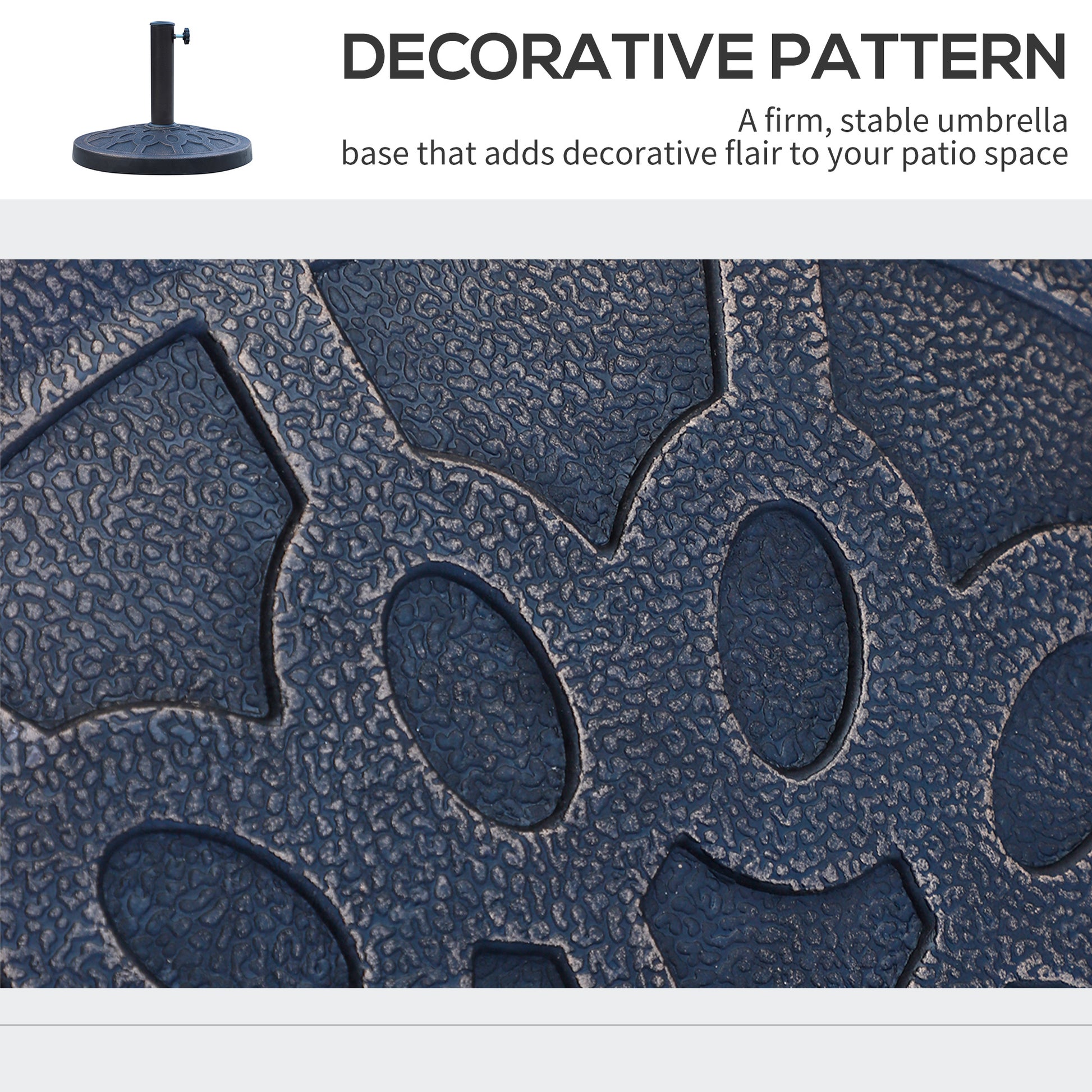 Enjoy the outdoor lifestyle with this attractive Outsunny patio umbrella stand. Just combine your umbrella with a table and chairs to create a relaxing oasis. Our resin parasol base holds your umbrella securely and evenly in place, so the umbrella can provide much-needed shade. The bronze tone outlook with decorative pattern brings an old fashion to your garden. Enjoy your days under an umbrella with this outside umbrella stand.
