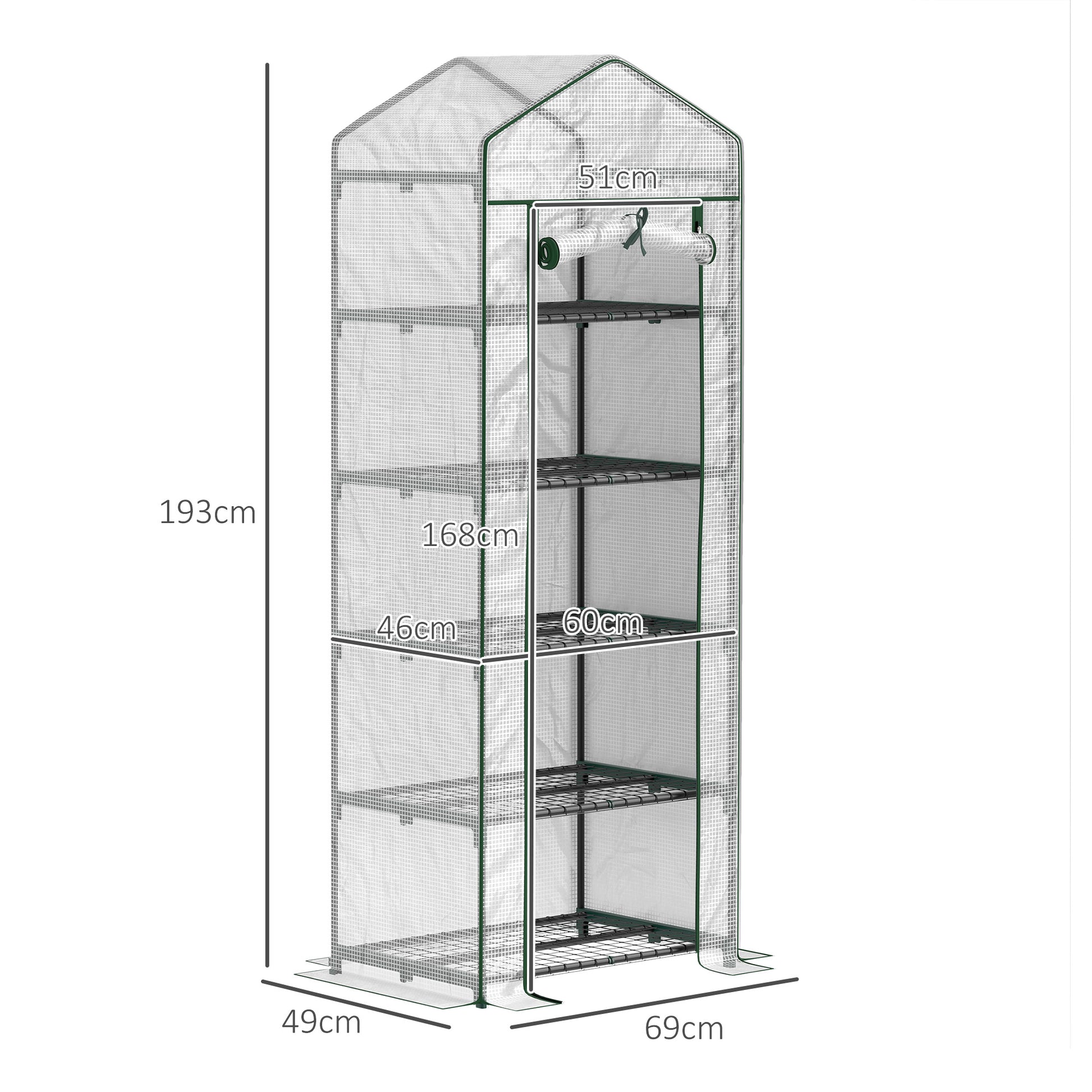 Outsunny 193cm Five Shelf Mini Greenhouse - White
