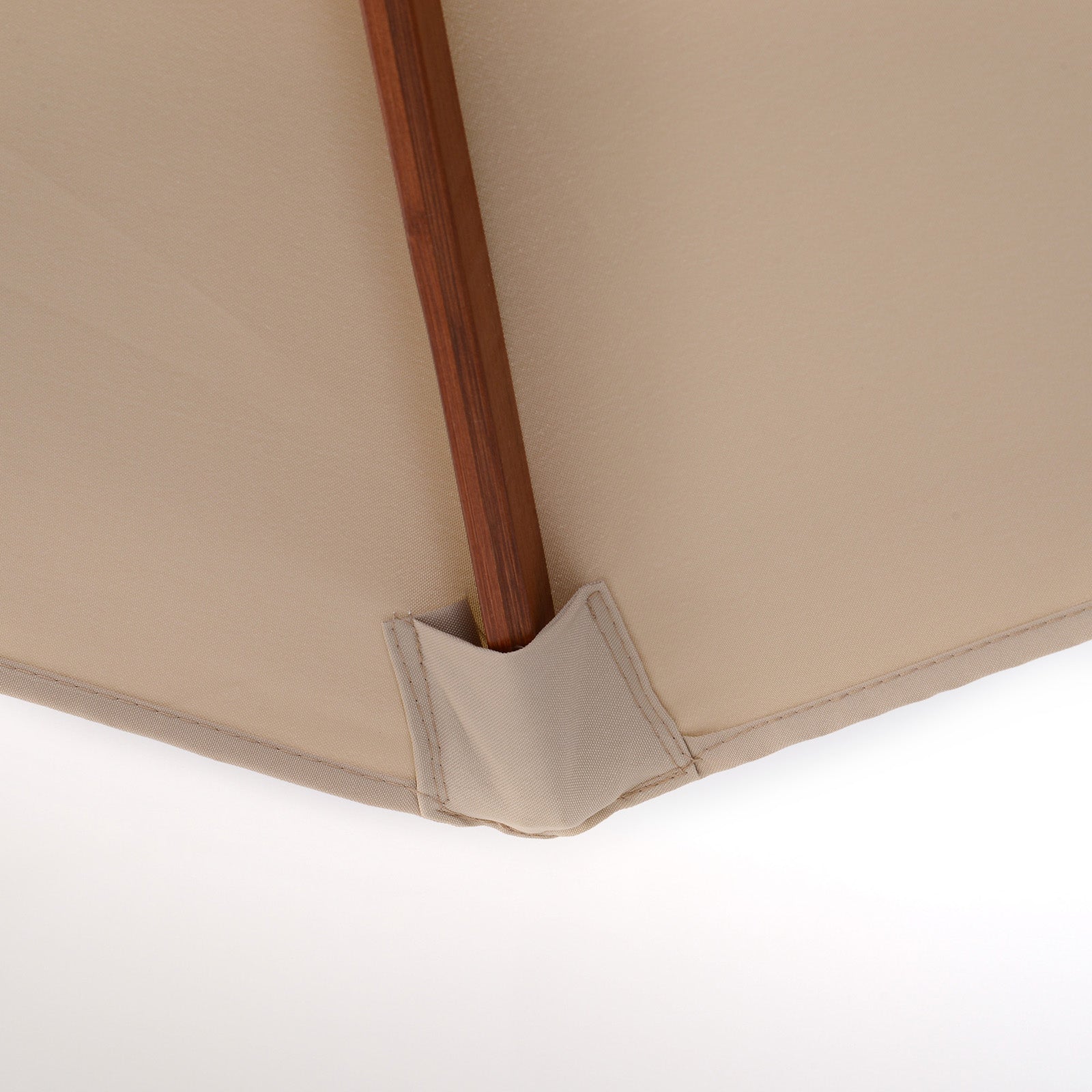 Live the elegant way this season and beyond - choose this Outsunny umbrella for your garden table. The main structure is made from poplar wood, providing a visually appealing alternative to standard metal. The wood is tough enough to be used all day long, with eight bamboo ribs connecting the canopy to the pole; enhanced support and strength. A two-tier canopy to help prevent