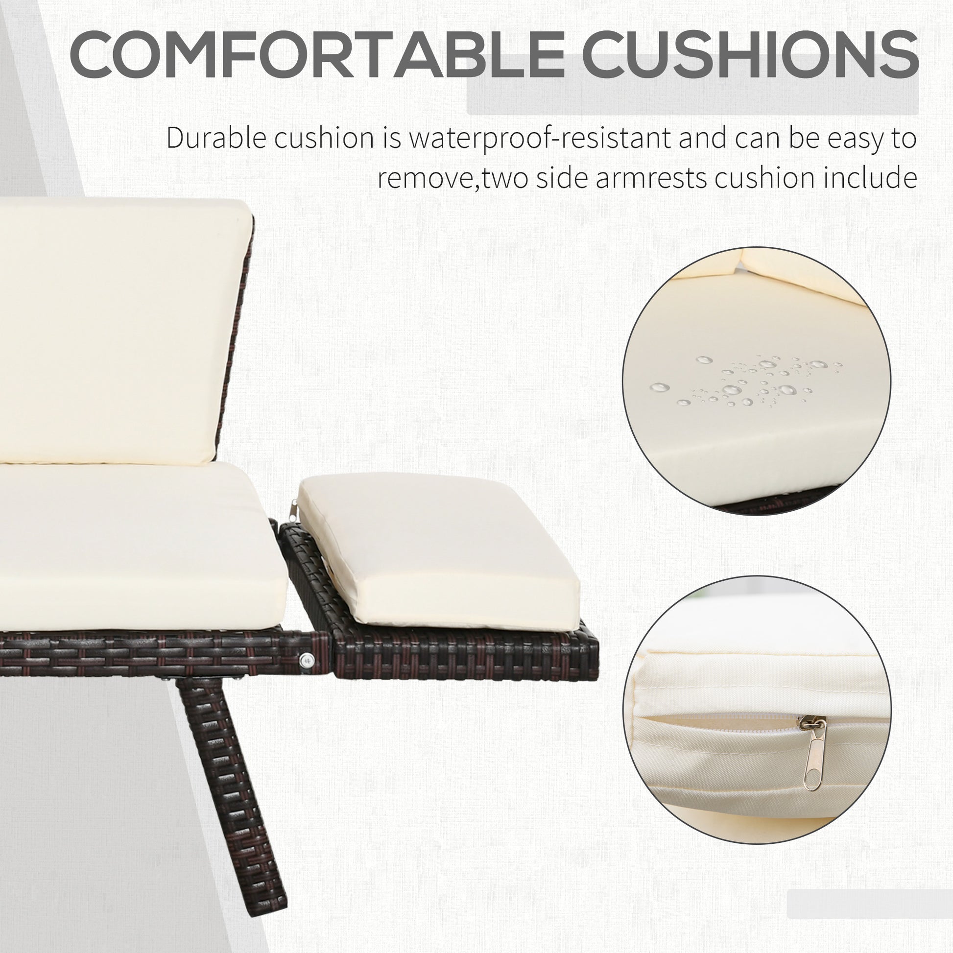 Outsunny 2-Seater 2-in-1 Rattan Convertible Sofa Daybed Brown