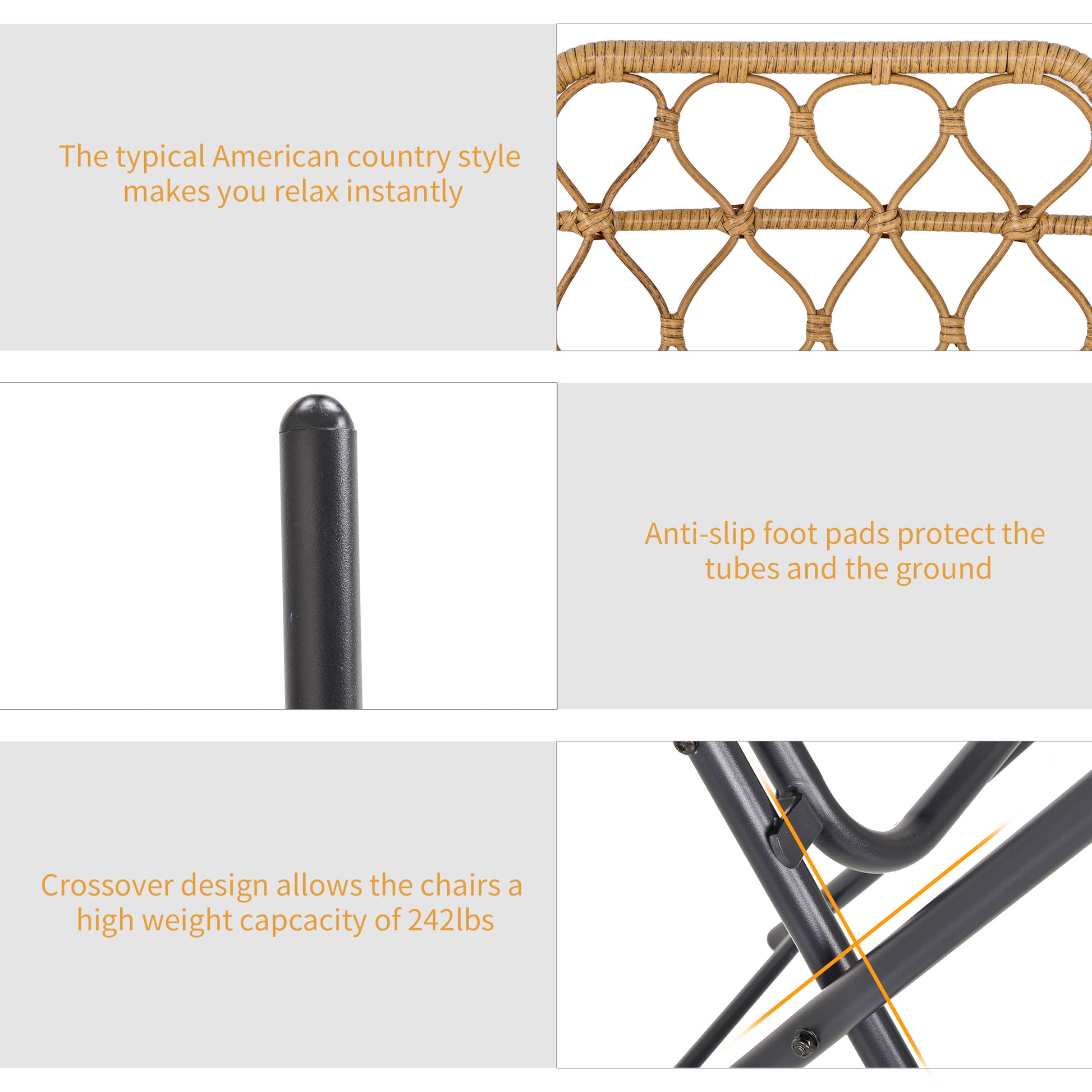 Outsunny 2 Seater Foldable Rattan Wicker Bistro Set, Coffee Table and Chairs, Natural