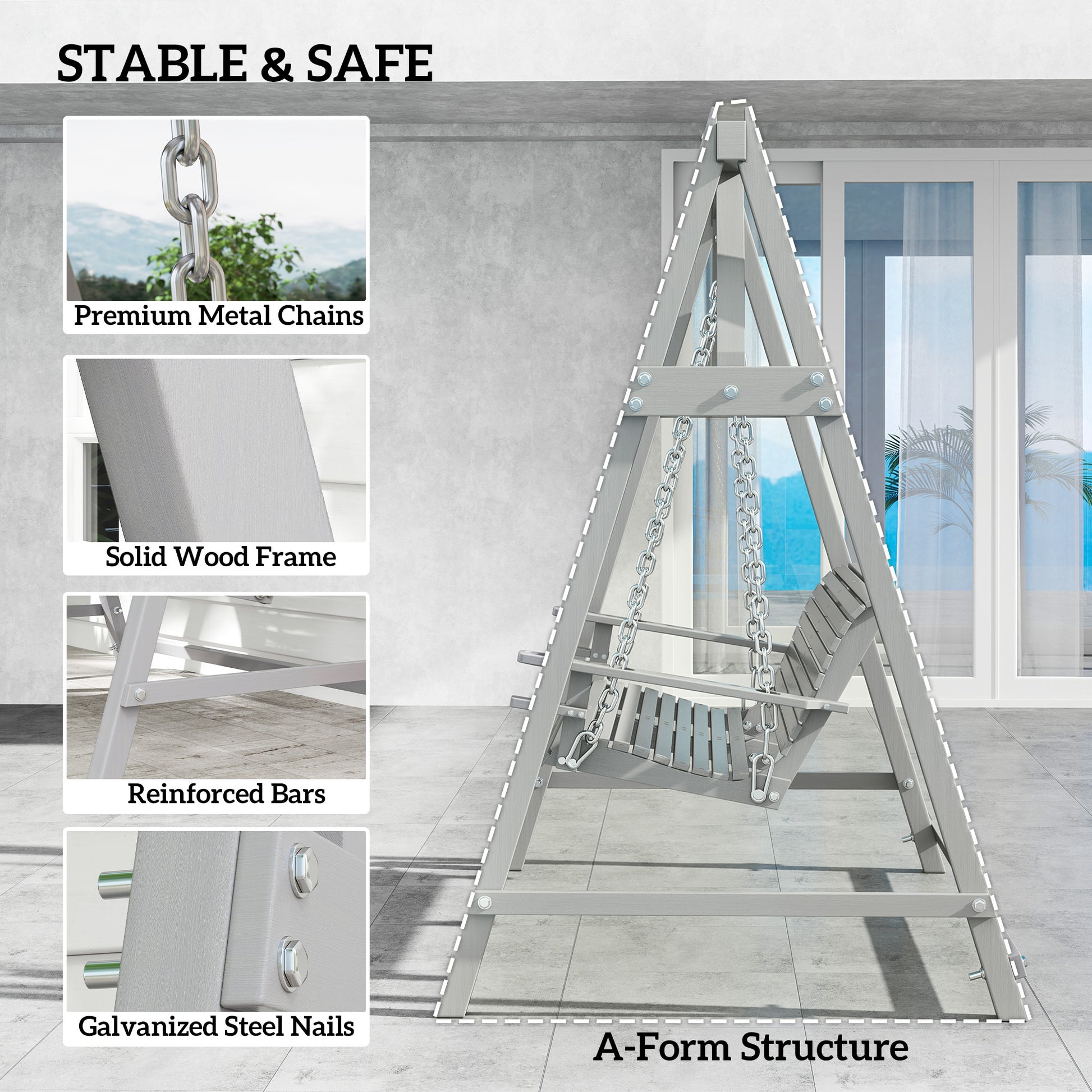 Outsunny 2 Seater Garden Swing Seat, Wooden Swing Chair Bench with Cup Holders for Outdoor Porch Patio, Grey