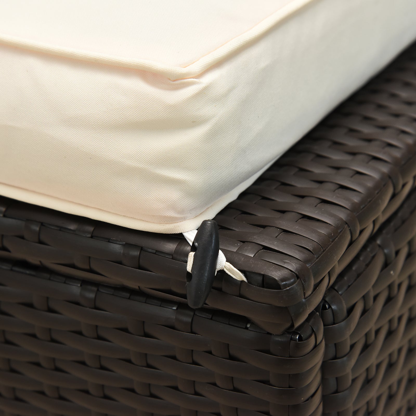 Outsunny 2-Seater Rattan Lounger Set-Deep Coffee/Cream White
