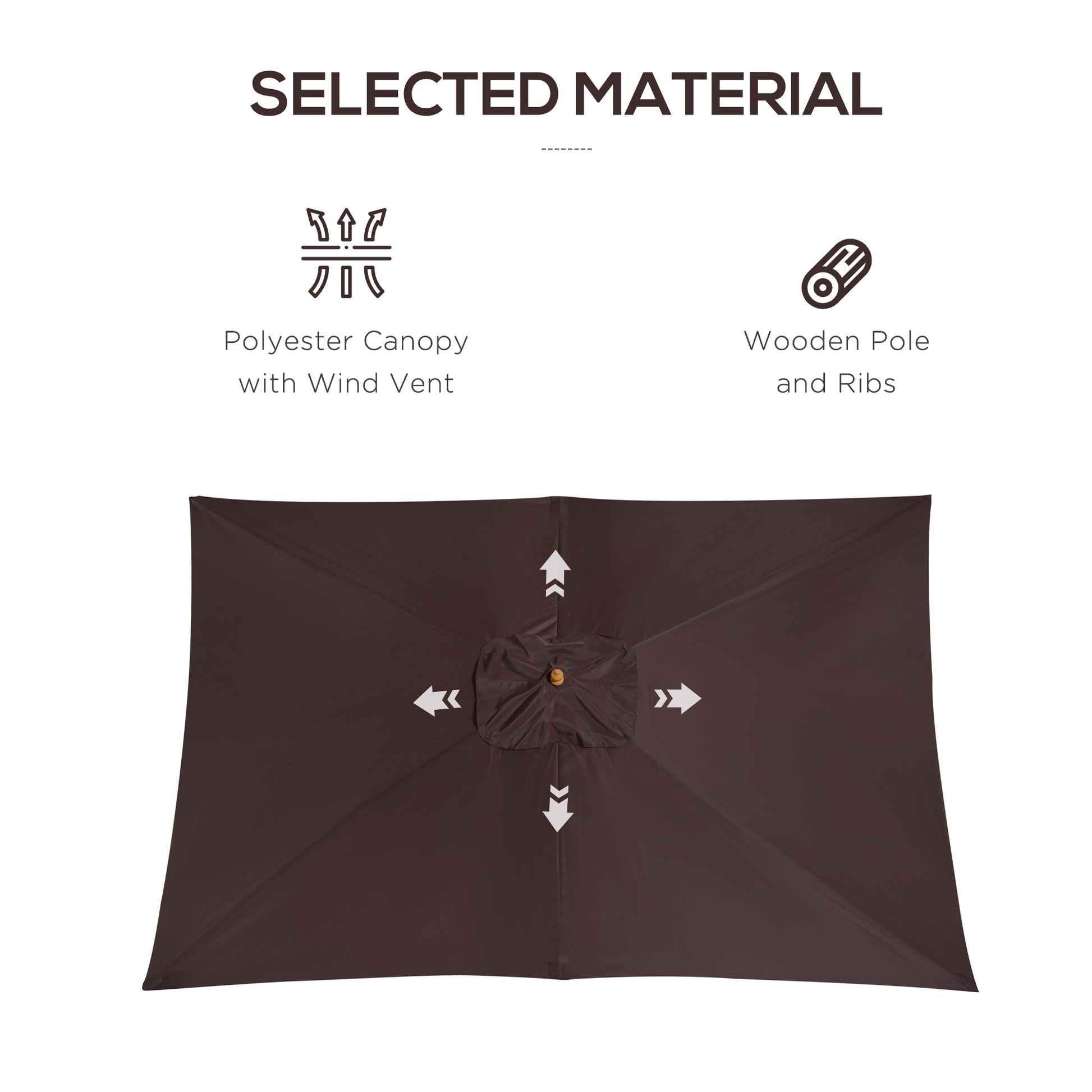 Outsunny 2 x 3m Wooden Garden Parasol Umbrella Outdoor Sun Shade Canopy, Dark Coffee