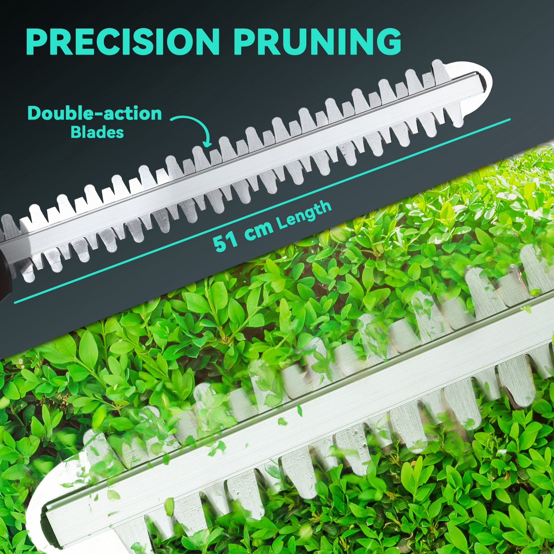 Outsunny 20" Cordless Hedge Trimmer, 18V Electric Hedge Cutter with 51cm Dual Action Blade, 2 x 4000mAh Batteries and Brushless Motor for Garden Branches, Shrubs, Twigs, Blue