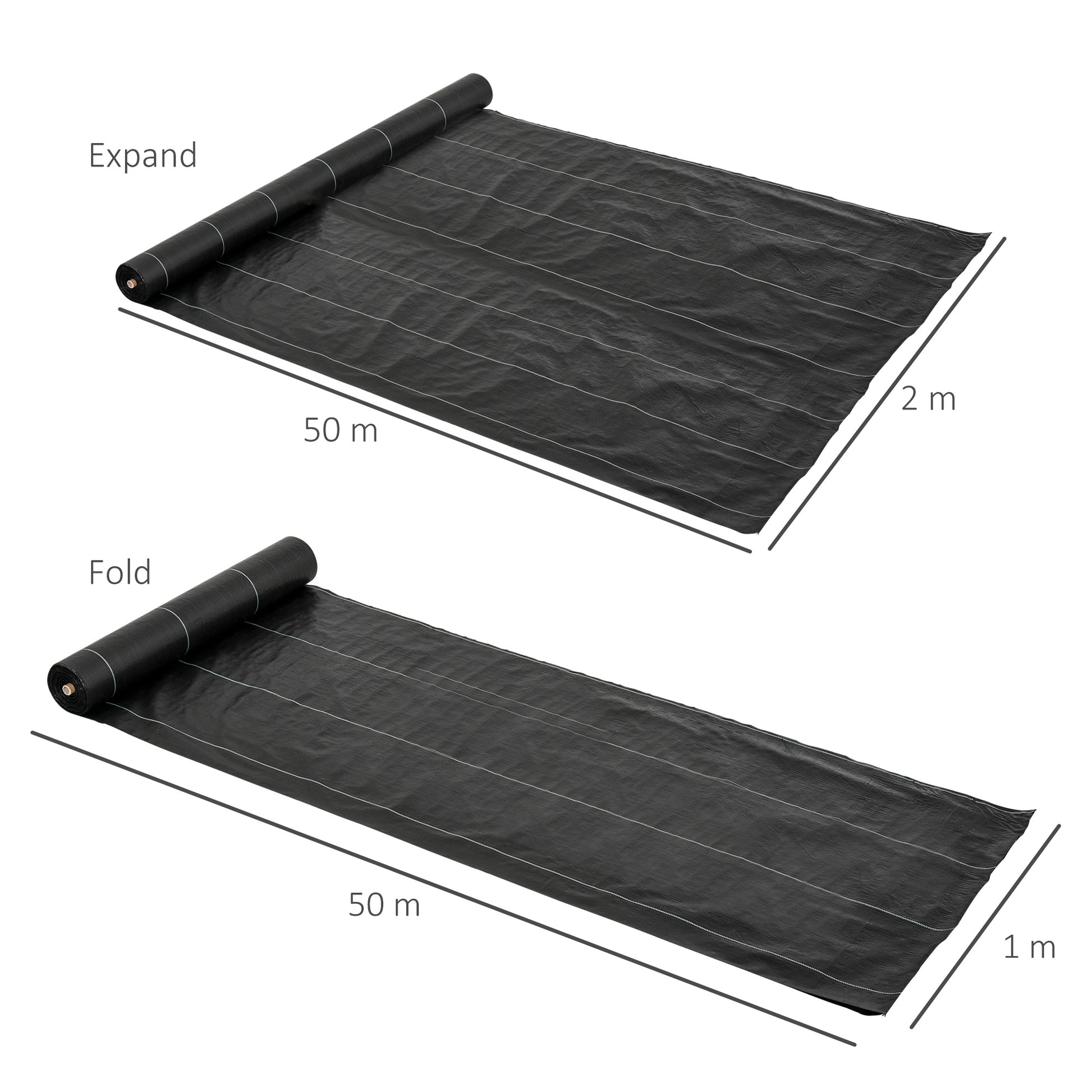 Outsunny 2m x 50m Weed Control Membrane, Heavy Duty Weed Control Barrier Fabric, 90gsm Ground Cover for Patios, Garden, Flower beds, Landscaping