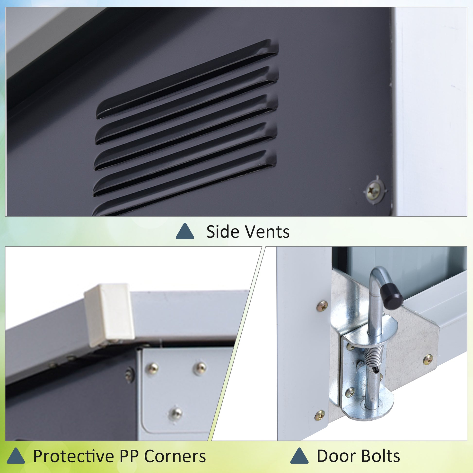 - Corrugated steel structure is solid, with a weather-resistant coating for outdoor protection