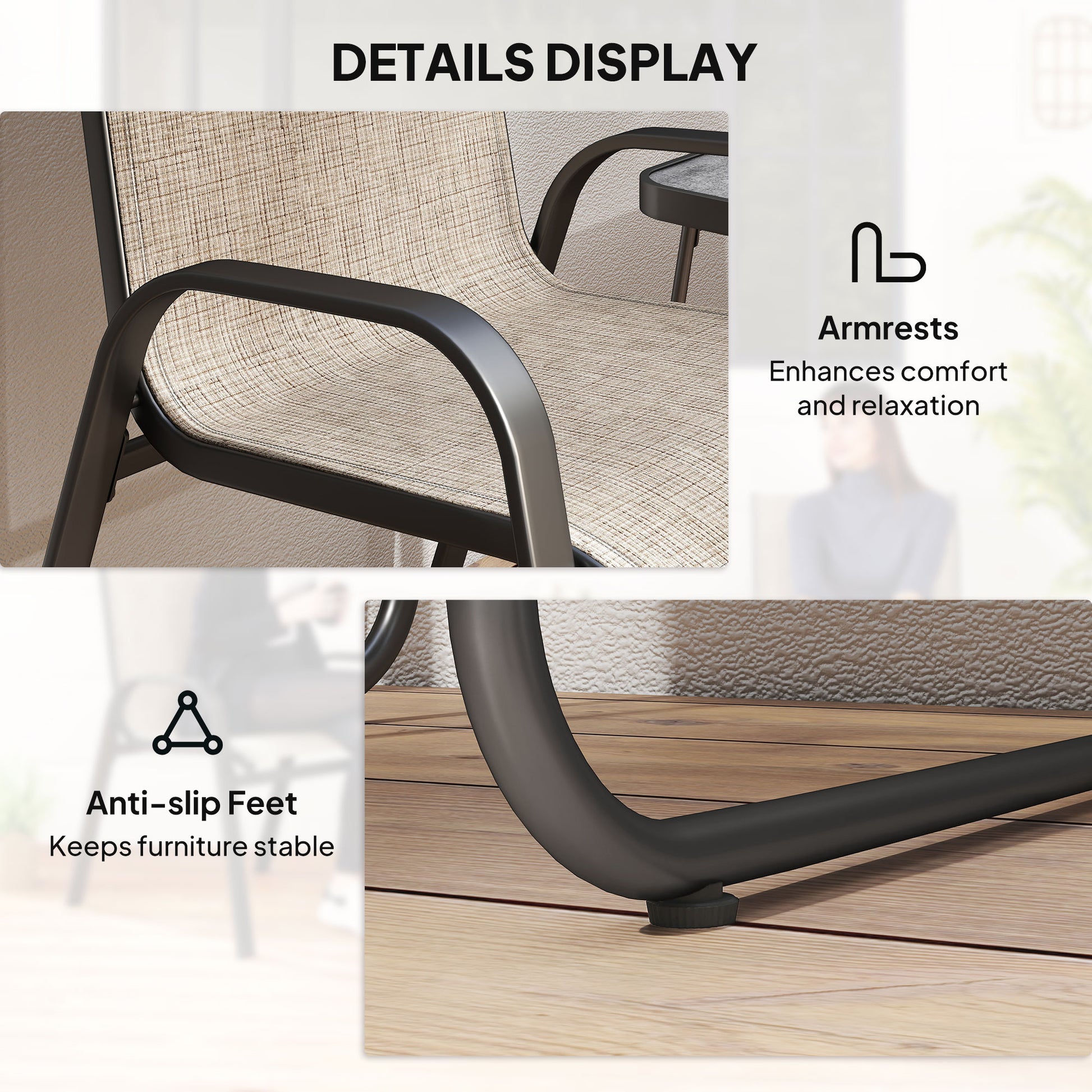 This Outsunny three-piece set is great for relaxing with company outdoors. Comes with two chairs and table. Each piece has a steel frame: strong and supportive. A great addition for all outdoor spaces.