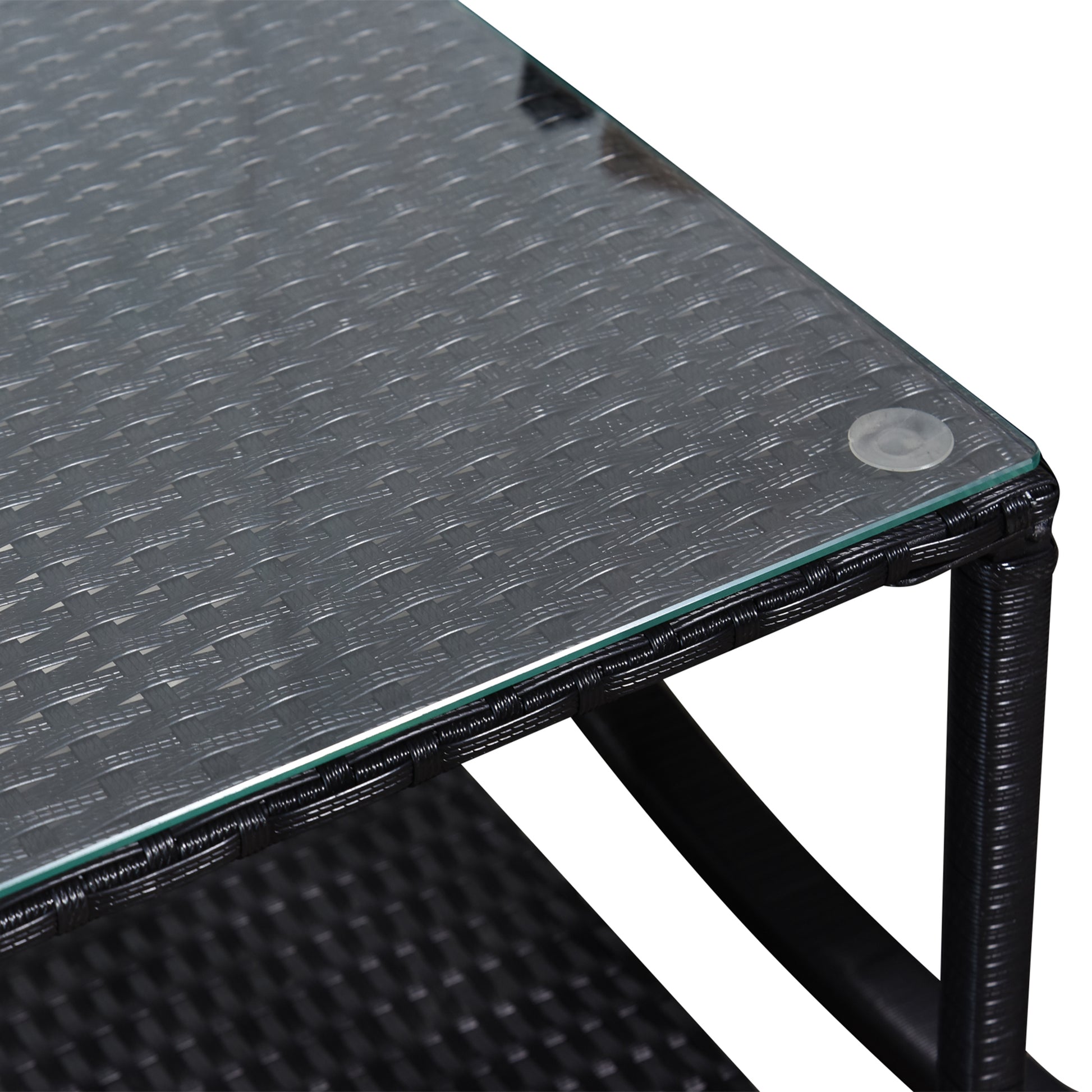 Outsunny 3 Pieces Rattan Garden Rocking Chair Set, Outdoor Rocking Bistro Set w/ 2 Cushioned Armchair and Glass Top Two-tier Coffee Table, Black