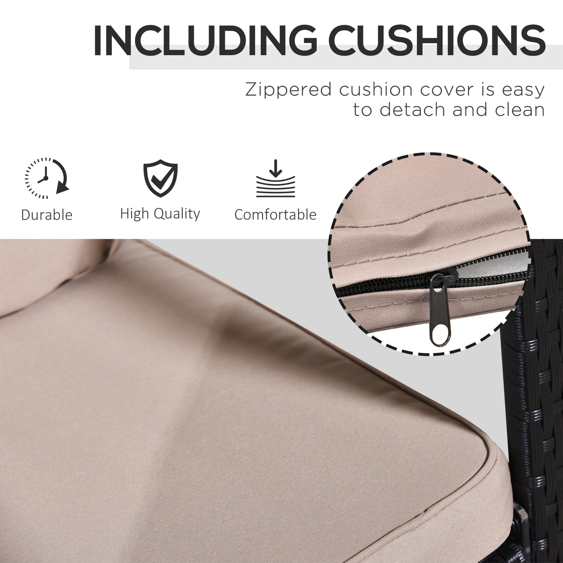 Rock the day away by yourself or with a friend with this three-piece set from Outsunny. Made from high quality PE wicker in a light grey finish, each piece is supported with a metal frame underneath for extra strength and stability. Each seat features two plush padded cushions and a high rise back for all day comfort. The set is completed with a matching side table which showcases a thick tempered glass top, ensuring it’s easy to clean whist adding a stylish finishing touch. Perfect for catching some well-deserved sun rays.