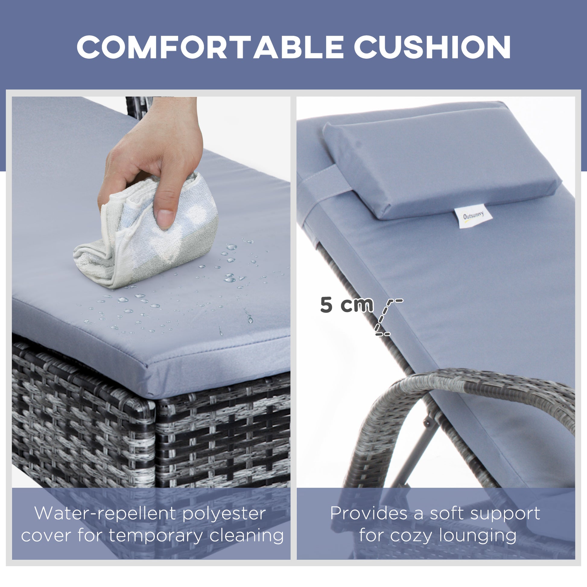Outsunny 3 Pieces Rattan Sun Loungers, Garden Wicker Wheeling Recliner , PE Rattan Lounge Chairs w/ Cushions & Side Coffee Table Grey