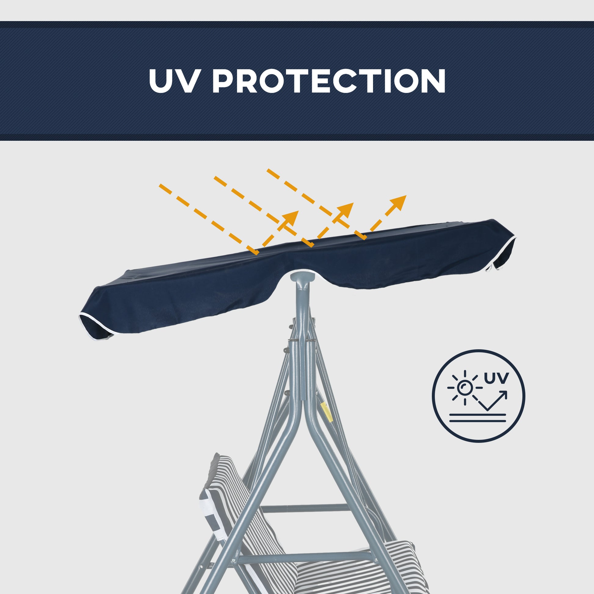 Relax in style and comfort - do it with this Outsunny swinging chair. Seats up to three people: plenty of room to relax with friends or grab extra room for yourself. The adjustable angle of the canopy allows you to shield yourself from mild weather above at different positions. With a padded seat and high back, you'll be relaxing comfortably and with support. Sport stripes for style, this season and beyond!