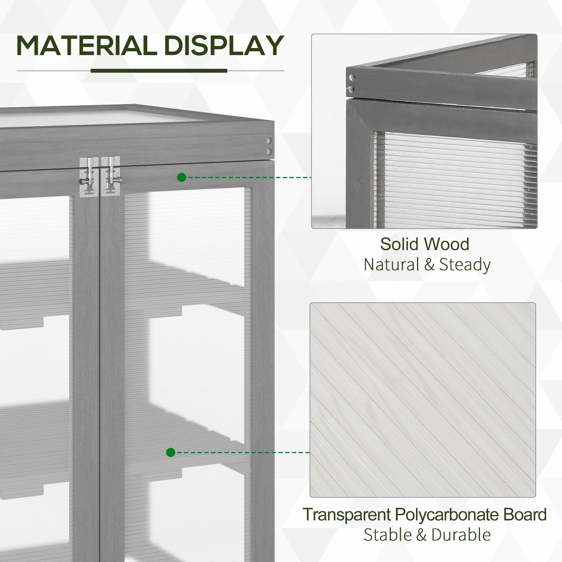 Outsunny 3-tier Wood Greenhouse Garden Polycarbonate Cold Frame Balcony Grow House w/ Storage Shelf for Plants, Flowers, Dark Grey