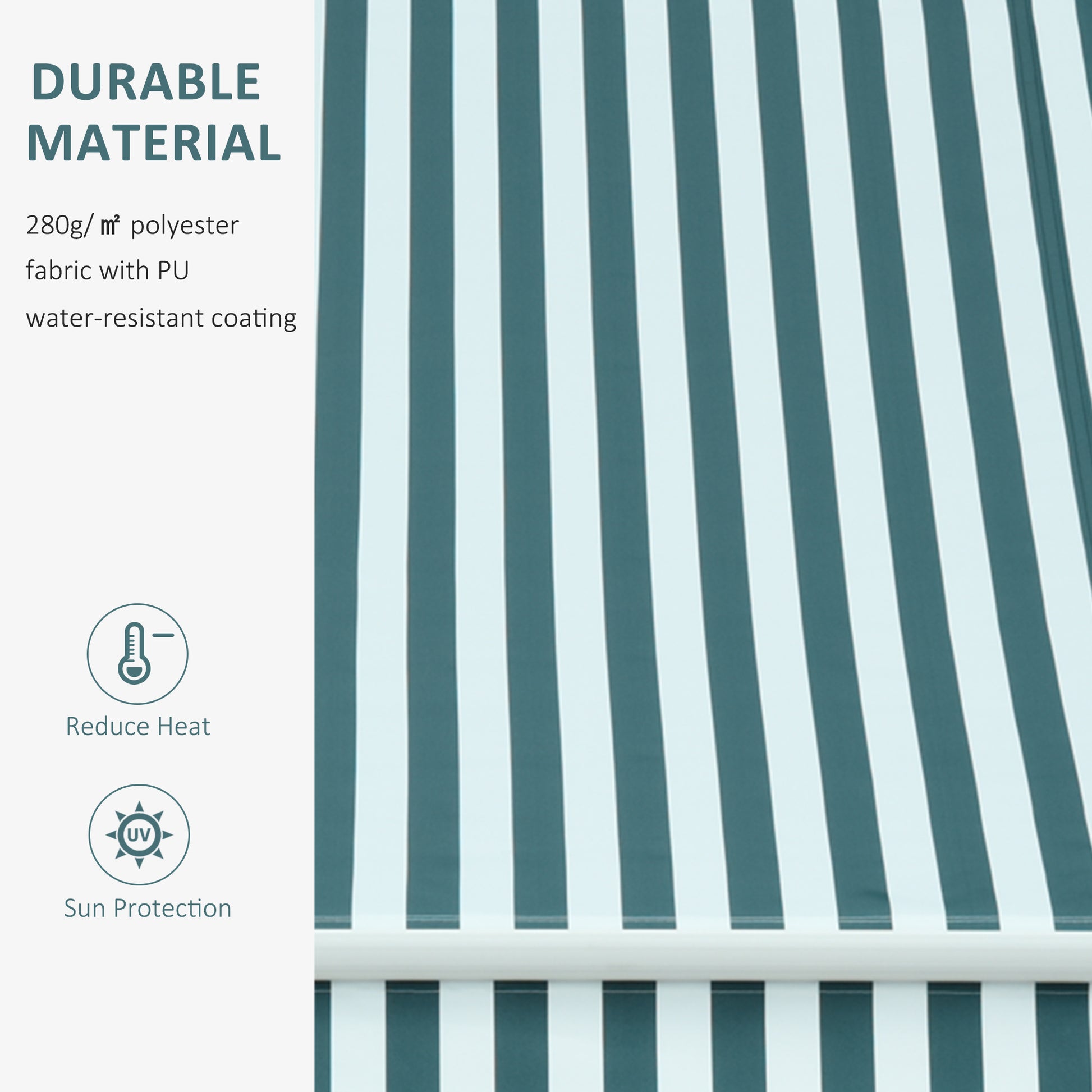 Outsunny 3 x 2.5m Patio Awning, Anti-UV and Waterproof Sun Shade Canopy with Chain Drive and Hand Crank, Green/White Stripes