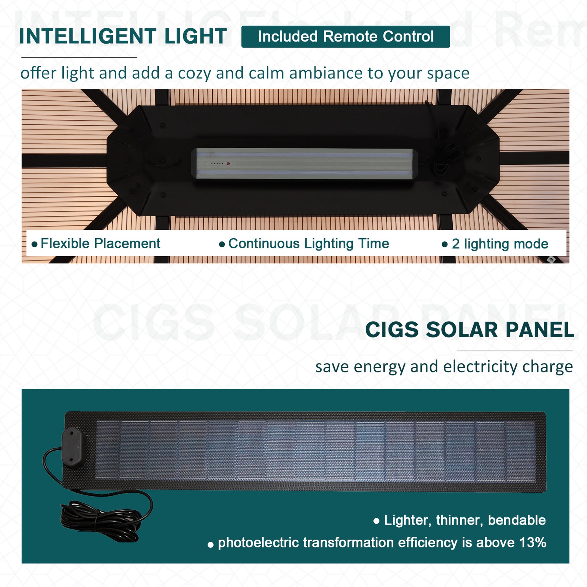 Outsunny 3 x 3.6m Polycarbonate Hardtop Gazebo with LED Solar Light and Aluminium Frame, Garden Pavilion with Mosquito Netting and Curtains