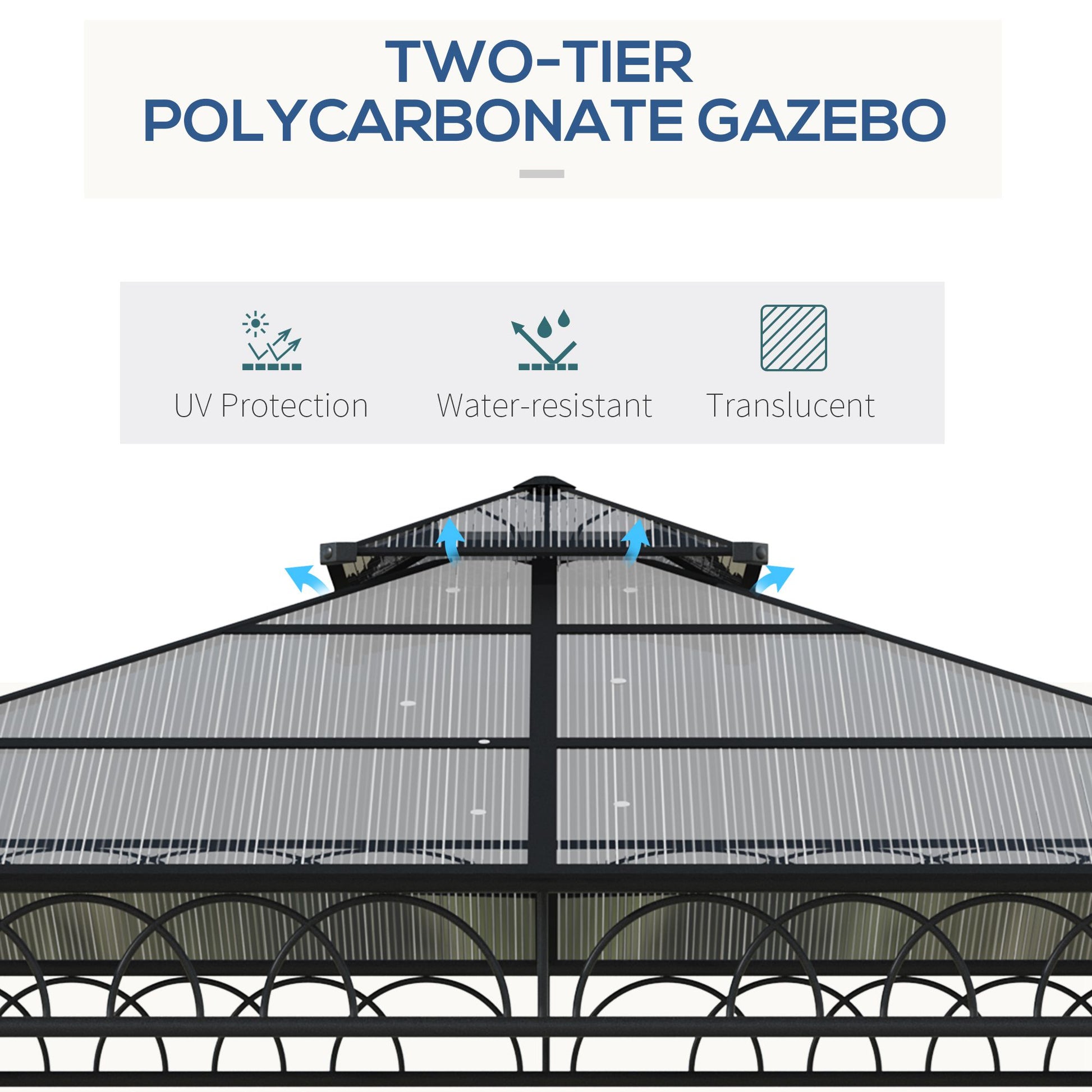 Outsunny 3 x 3 (m) Outdoor Polycarbonate Gazebo, Double Roof Hard Top Gazebo with Galvanised Steel Frame, Nettings & Curtains for Garden, Lawn, Patio and Deck, Khaki
