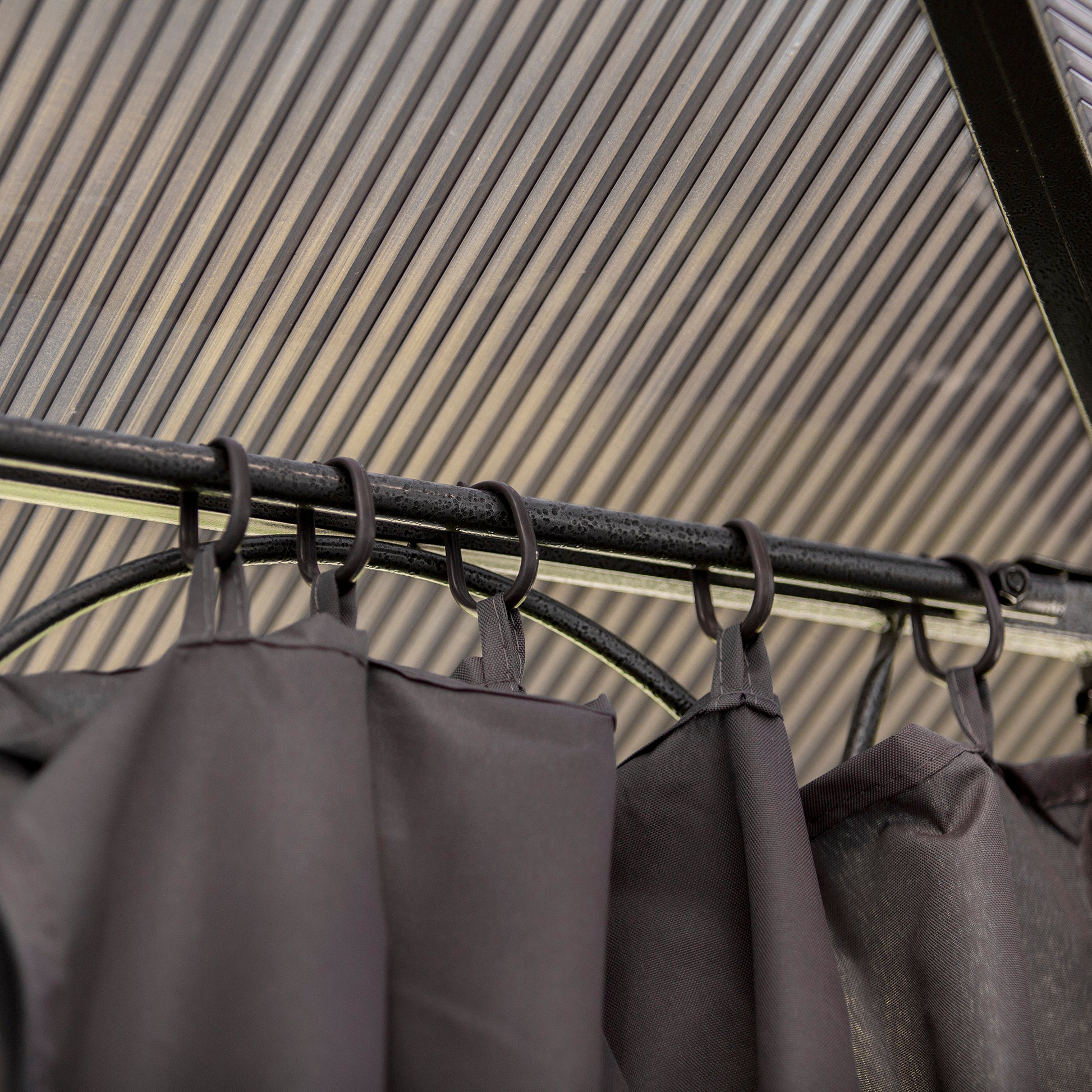 Indulge in the ultimate relaxation with the Outsunny hardtop gazebo, designed for those who cherish outdoor living. Perfectly suited for your backyard or poolside, this gazebo offers a serene retreat with its UV-protective polycarbonate roof, shielding you from the sun and rain. The double-sided zipper curtains ensure a private space for intimate gatherings or peaceful solitude. Its robust construction withstands strong winds and snow, promising safety and durability.